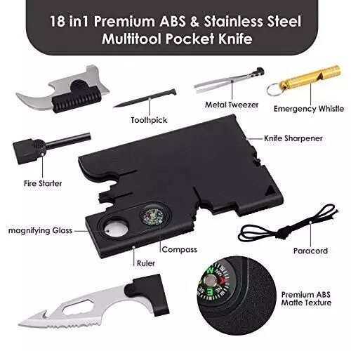 Crafted for versatility and convenience, this 18-in-1 Credit Card Multitool is an essential accessory for any situation. It's designed with a durable combination of Acrylonitrile Butadiene Styrene, Alloy Steel, and Stainless Steel, ensuring reliable performance. The sleek black finish complements its compact design, making it a stylish addition to your everyday carry items.The tool features a non-slip grip for secure handling and lightweight construction for ease of use. Included among its multitude of functions are a screwdriver, wrench, ruler, and bottle opener, making it a practical gift for dad, men, or anyone who appreciates cool gadgets with a utility edge.