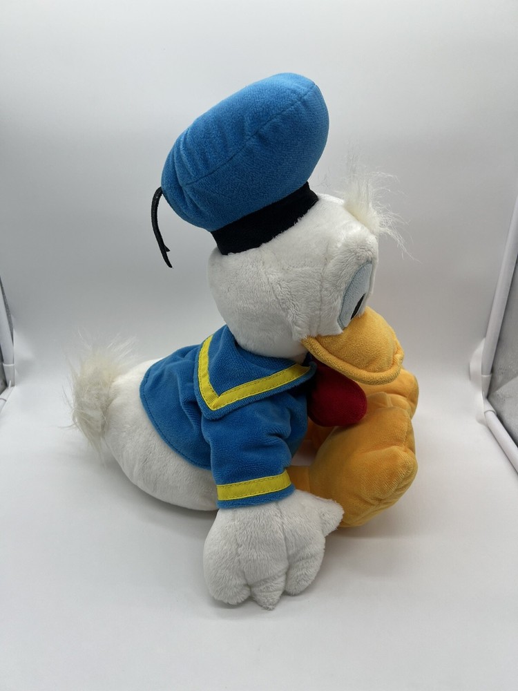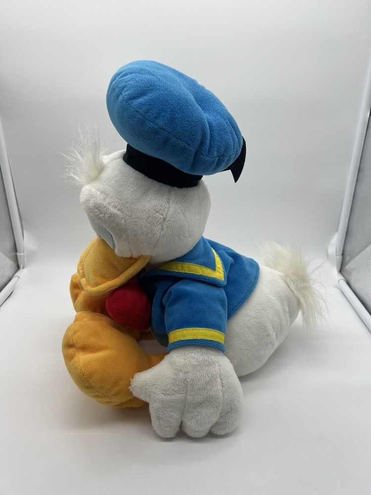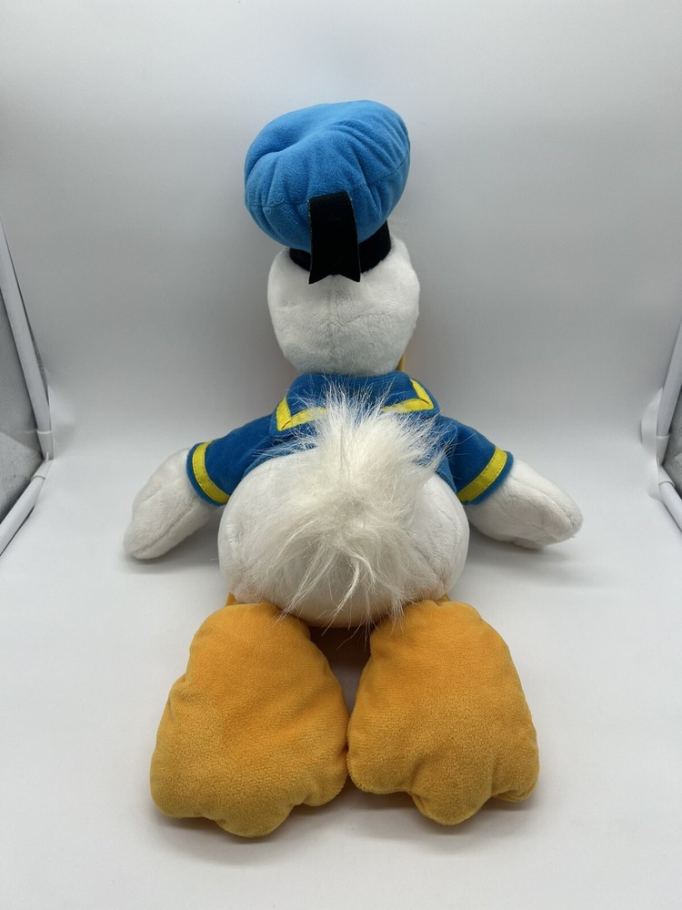 This Donald Duck plush is absolutely adorable! The 18" size is perfect for cuddling, and the soft, high-quality fabric makes it super huggable. Even without the tag, it looks brand new—great find for any Disney fan. My niece loves it! The exclusive design captures Donald’s playful personality perfectly. Highly recommend for collectors or as a gift!