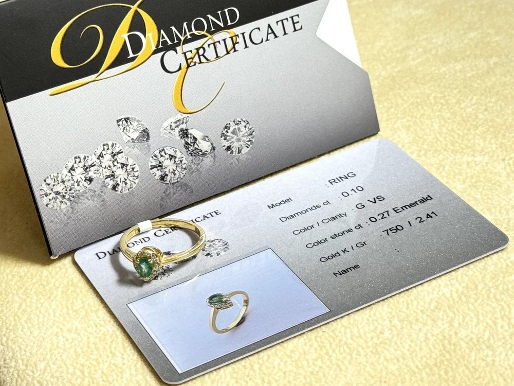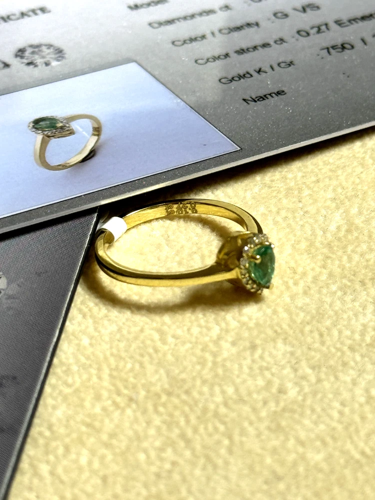 Ring Yellow Gold 18k 750 Emerald 0.27ct & Diamonds 0.10ct Certified 2.41grams TYPE:ring GANDER:lady MATERIAL:yellow gold 18k 750 WEIGHT RING:2.41grams SIZE RING:12 STONE:Emerald 0.27ct natural / diamonds 0.10ct total G VS CONDITION:NEW THE ITEM YOU SEE IN THE PHOTO IS THE ONE YOU RECIVE, SO PLEASE SEE THE PHOTOS, THE SHIPPING COST IS 39 $ , THE ESPECTED TIME IS 3-5 DAYS, WE ACCEPT PAYMENT WITH PAYPAL, ONLY VIA REGISTRED MAIL, WE SHIPP WORLDWIDE, IF YOU HAVE ANY UNCERTAINLY BEFORE BIDING. PLEASE CONTACT ME THANKS.