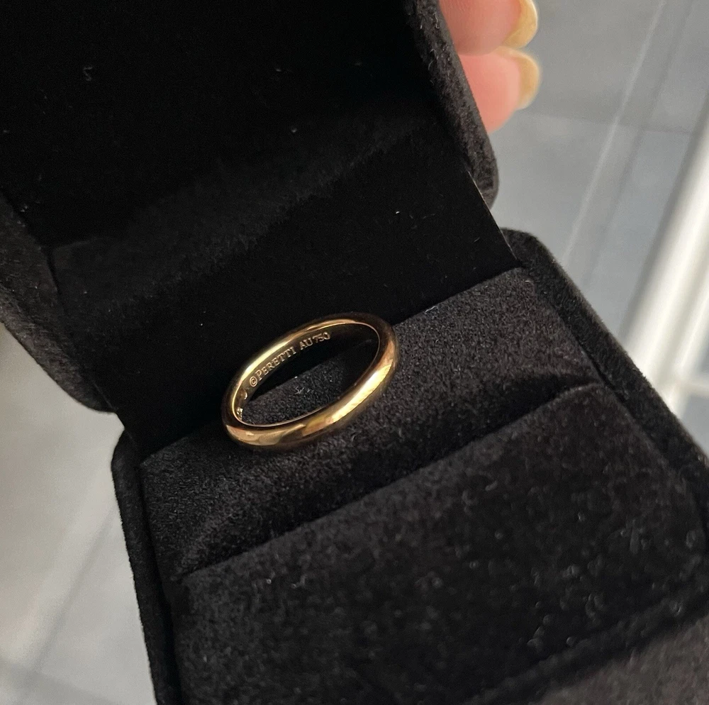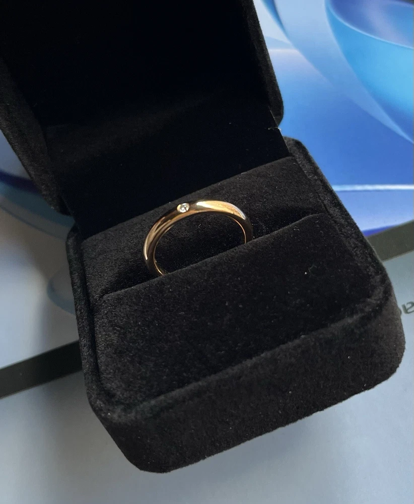 18k gold ring Tiffany & Co Peretti wedding size between I-J (48) 3.3 grams. Diamond .02 ct It hasn't been worn, it became too small after giving birth, it is in excellent condition, no major scratches or abrasions! Open to suggestions
