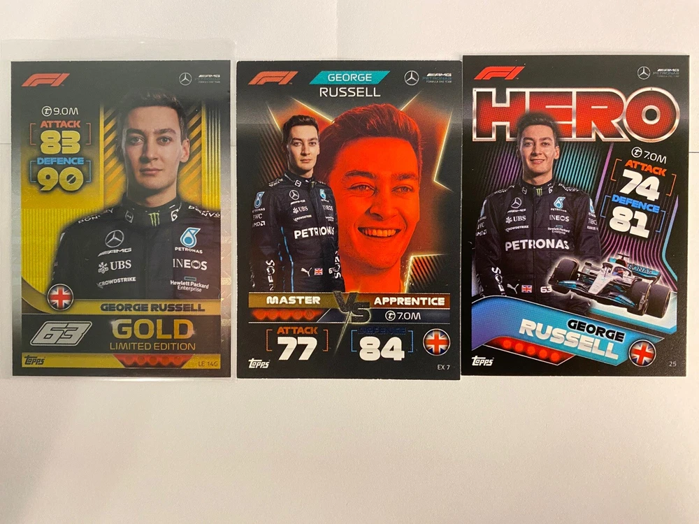 18x George Russell Lot 2022 Topps Inserts 2024 Topps Chrome and Match Attax