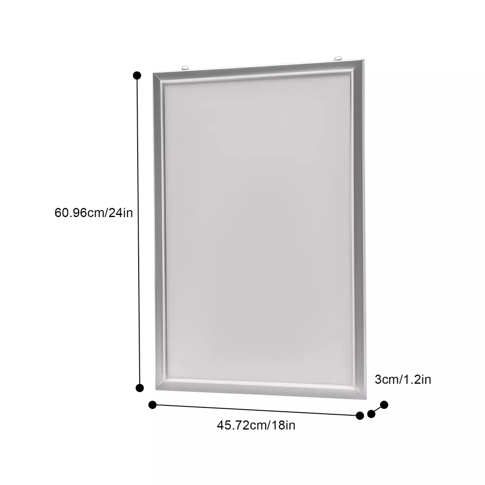 Welcome LED Movie Poster Frame 18" x 24" LED Light Box Display Sign Holder in Silver Wall Mounting, Aluminum Alloy, Frame for Movie Poster Advertising Display Application It is suitable for exhibitions, advertisements, signs, and decorations in cinemas, event promotions, retail stores, restaurants, art displays, trade shows, banks, hospitals, libraries, counters, offices, companies, menu boards, jewelry stores, hotels, studios, etc. Key Features Soft Light: This product uses a uniform nano light guide plate and side light guide technology, making the light soft and not harsh to protect your eyes. The LED light has high brightness, fast heat dissipation, which can provide stable performance, extend the service life of the product, and save electricity. Multiple Uses: It can display posters for cinemas, shopping malls, restaurants, etc. to attract customers' attention or be used as a signs board to guide the way for passersby. You can also put it at home for decoration or use it as a display board for art galleries and museums. Narrow Edge Design: The frame is spliced at 45° and has a width of 1.5 inch, which can maximize the visibility of the visual area (18 *24 inches) and play a promotional and display role. Thoughtful Design: The built-in stainless steel shrapnel and the front-opening frame design allow you to gently flip out to open the panel, making it easy to replace the poster Details Study Hooks: With two sturdy hooks on the back, you can easily hang this product on the wall. Strong and Durable: The high-quality acrylic panel is dustproof, moisture-proof, and can resist impact and deformation. Meanwhile, the aluminum alloy frame adopts a sandblasting process, baking paint process, and an oxidation process, so it can resist wear, corrosion, rust, and heat. Protective Packaging: The four corners of the product are wrapped with sponges to resist compression and falls, which can prevent product damage in transit. Ready to Use: This product doesn't need assembly and you can use it directly after plugging it in. Installation 1.Place the poster frame on the wall, and mark the location of the nail hole with a pen. 2.Drill 2/4 holes at the marked position and punch nails(not included). 3.Remove the rear protective film and hang the frame on the corresponding nail. 4.Remove the front protective film. Specification Color: Silver Material: Acrylic, Aluminium Alloy Shape: Rectangular Style: Modern Plug Voltage: 110V Power: 10W Power Type: Plug-in Mounting Type: Wall Mount Lumen: 2000lux CRI: >85 Color Temperatur: 9000-10000K Service Time: About 80000h Efficiency: E Plug: American Standard Light Source: LED (Included) Net Weight: 2.5kg/5.5lbs Gross Weight: 3kg/6.6lbs Surface Treatment: Sandblasting Process, Baking Paint Process, Oxidation Process, Cutting Process Product Size: 45.72*3*60.96cm/18*1.2*24inch Package Size: 68*47*4cm/26*18*1inch Package Included 1* LED Poster Frame Notes 1.The product has protective films on both sides, please tear them off before use. 2.Please allow the slight color difference caused by the shooting light and 1-3cm error due to manual measurement, and make sure you do not mind before ordering. Payment Delivery details Terms of sales About us Contact us Payment We accept ebay payment 。 Fees such as import duties, taxes are not included in the item price or shipping costs. These charges are the buyer's responsibility. Delivery details Shipping: 2-9 working days to: USA Terms of sales We maintain high standards of excellence and strive for hundred percent customer satisfaction. Feedback is very important to us. We hope that you contact us immediately before you give neutral or negative feedback, so that we can address your concerns. It is impossible to address issues if we do not know about them! About us Your satis faction is our ultimate goal. We work hard to earn your trust and future business. Our certified technicians have tested each item before shipping. The unit comes with 1 year limited warranty on all manufacturing defects. a) If you receive a defective item, you may return it or ask for a discount. Please contact us within 14 days after you receive the package. b) What you returned must be intact and in its original packaging as re? u. Customer is responsible for shipping costs of the returned item. c) We will cover the cost of shipping back t with the shipping rate indicated in the registration page. We will send you a new unit or refund the full payment you paid. Thank you. Contact us Business Hour Business Hour: Monday To Friday: 8:30 AM to 5:00 PM (Beijing China time) Due to time zones, our reply to your questions may not be immediately. But within above working time, we will reply your email within 24 hours. If it's non-workdays, please kindly be patient and wait till Monday. Please contact us with ebay message. Please feel free to contact us if you have any questions. Monday To Friday: 8:30 AM to 5:00 PM (Beijing China time) Due to time zones, our reply to your questions may not be immediately. But within above working time, we will reply your email within 24 hours. If it's non-workdays, please kindly be patient and wait till Monday. Please contact us with ebay message. Please feel free to contact us if you have any questions.