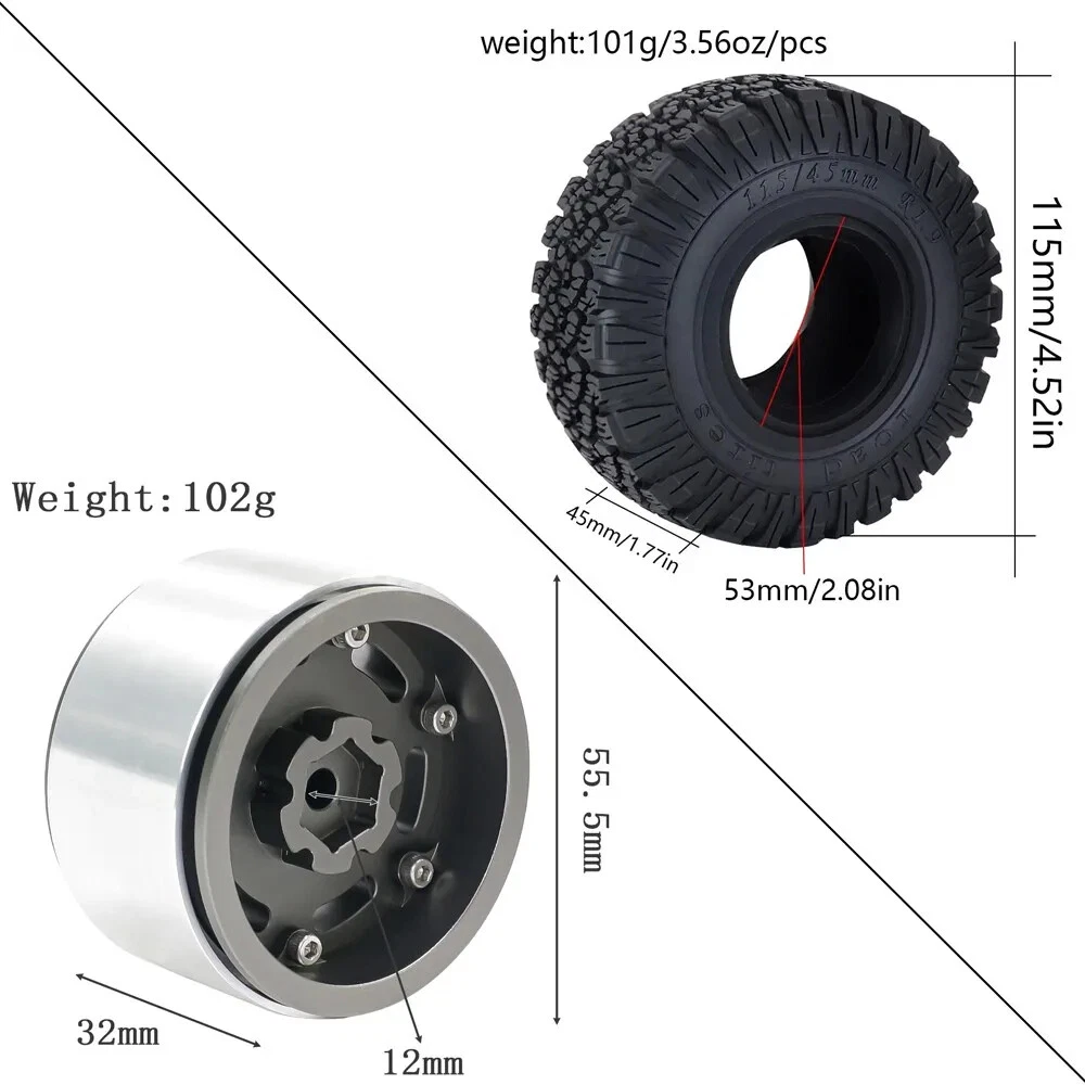 [xlmodel]-[custom]-[51945] 1.9 Inch 115mm Rubber Tires+metal Wheel Hub For 1/10 Rc Crawler Car Traxxas Trx4 Trx6 Axial Scx10 90046 Redcat Yikong Rc4wd Rgt Tire Feature: Brand new rubber tires Improved material formula makes tires stickier and softer The grip is great Color: black Material: rubber Diameter: 115mm Width: 45MM Weight: 101g / pcs Every tire is equipped with a sponge lining Wheel hub features: Material: Aluminum alloy Diameter: 55mm Width: 32mm Adapter: 12mm Weight: 102g/pcs Product List: (Optional) A=4 wheels B=4pcs tires C=Wheel hub+tire * 4pcs [xlmodel]-[photo]-[0000] [xlmodel]-[custom]-[51931] Our company was founded in 2008, has been researching, developing, producing and selling for more than ten years. The factory is located in the RC model factory in Shenzhen, China. If you need a large order or custom product, please contact me. [xlmodel]-[custom]-[51934] 1.100% Real Picture.We take the pictures of the products by ourselves for showing you the original products. These are only for your reference because there may be a little difference between the pictures and the real item. 2.12 months Manufacturer`s limited Warranty for defective items. Defective items must be reported and returned within the warranty period (and in the original packaging, if possible). You must tell us what the defect is and give us your order number. We do not repair or replace items with an expired. [xlmodel]-[custom]-[51932] 1.Worldwide shipping. (Except some countries and APO/FPO) 2.Orders processed timely after the payment verification. 3.We only ship to confirmed order addresses. Your order address must match your Shipping address. 4.Service transit time is provided by the carrier and excludes weekends and holidays. Transit times may vary, particularly during the holiday season. 5.If you have not received your shipment within 30 days from payment, please contact us. We will track the shipment and get back to you as soon as possible with a reply. [xlmodel]-[custom]-[51935] 1.Buyers early confirmation will be highly appreciated after receiving the items. 2.Since your feedback is very important to our businesss development. If you are satisfied with our product and service, we sincerely invite you to leave positive feedback for us. 3.Please contact us before leaving any negative or neutral feedback. We will work with you to solve any problems. [xlmodel]-[custom]-[51933] 1.You have 7 days to contact us and 30 days to return it from the date it was received. If this item is in your possession more than 7 days, it is considered used and we will not issue you a refund or replacement. There are no exceptions! Shipping cost is bear by both seller and buyer in half. 2.All returned items must be in the original packaging and you must provide us with the shipping tracking number, specific reason for the return, and your po#. 3.We will refund your full winning bid amount , upon receipt of the item in its original condition and packaging with all components and accessories included.After both buyer and seller cancel the transaction from aliexpress. Or, you may choose to have a replacement. 4.We will bear all the shipping cost if the product(s) is (are) not as advertised.
