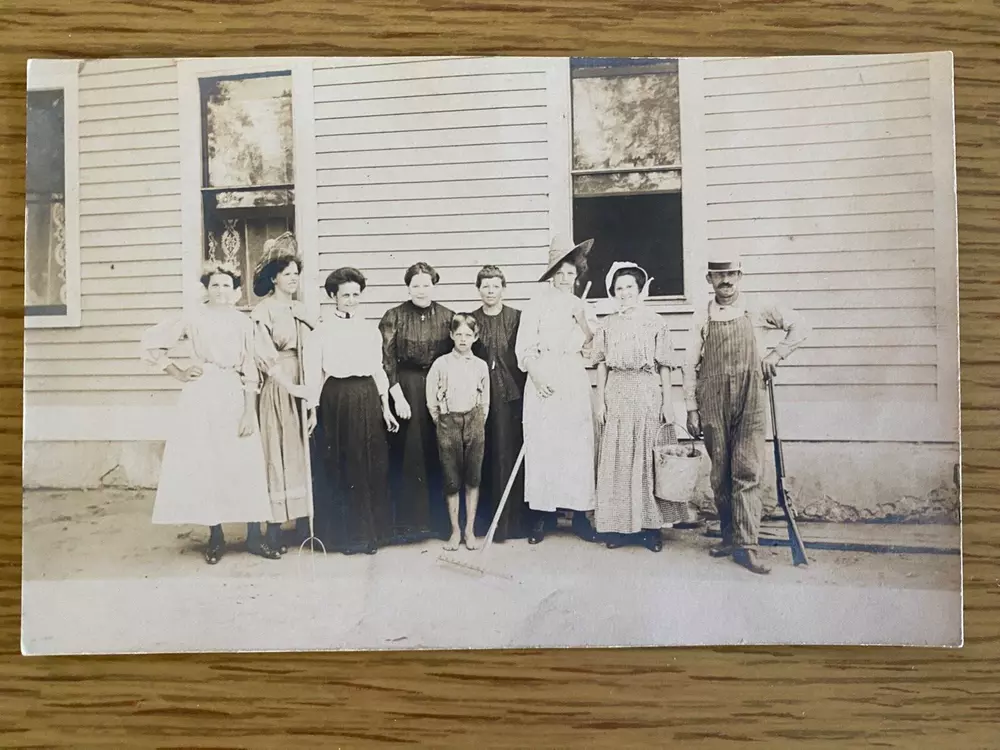 Large Family Posing in front of home Vintage real photo postcard 1910s Rural Americana Size is 3.5" x 5.5" inches – unposted ________________________ Please wait for combined invoice before paying Visit our store for 2,000+ items – Thank You!