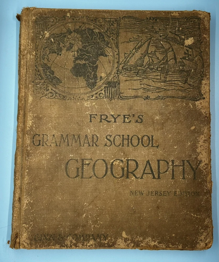 1902 Frye’s Grammar School Geography Harcover Book New Jersey Edition Ginn & Co. This is a pre owned item which has various cosmetic blemishes, including signs of wear, tears, markings and imperfections due to its previous use, age, movement, and storage. It should also be noted that color may vary from photos due to camera flash or/and computer monitor color variations. If condition concerns you, please review the images closely before purchasing, zooming in as necessary. Questions are also welcomed. SKU DL/30/3/23