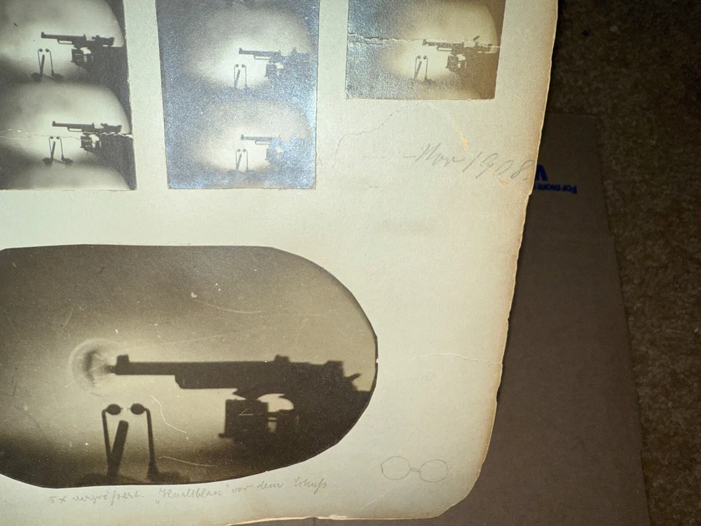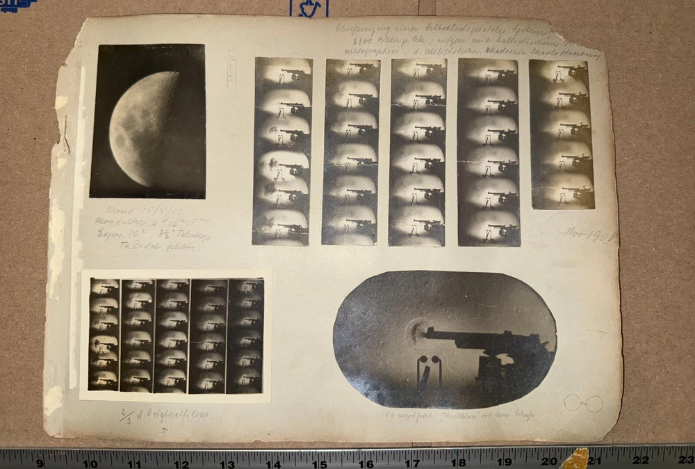 USA PACKING & POSTAGE IS $12.50. PAYMENT DUE WITHIN 3 DAYS. Sorry it was a partly cloudy day when pictures were taken so the color & focus are off in the gallery images above. Overall in "G" good condition. ?'a please ask In this auction is: 1908 Interesting MACHINE automated military GUN film sequence PHOTOGRAPHS This is a really interesting & unusual double sided album sheet of images. The one side shows 1908 by the machine gun showing in film automation images of round etc. The other side has a date of 1911 with some NY scenes besides the moon on the one side is really neat like pre World War 1 images.