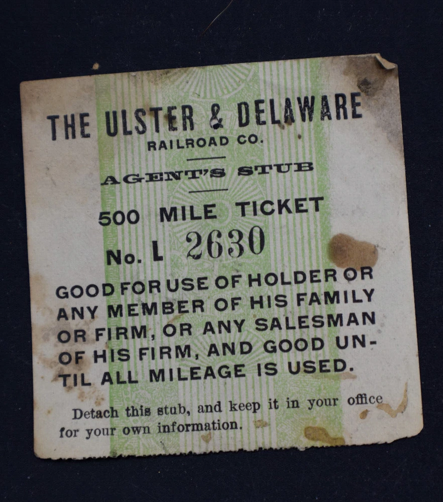 1910 *RARE* 500 Mile Ticket Ulster & Delaware RR See photos for condition details. Due to high loss in shipping to certain countries, insurance is required for shipping to a location that does not provide tracking PLEASE READ THE RETURN POLICY BELOW: RETURNS are seldom made, I have been on for many years and Buyers satisfaction is important to me. This is why I provide good description, detailed photos and request questions from you to help you make the right choice to eliminate returns. Please read the description and view detailed photos. Please ask questions if you have particular needs or need clarification. Communication is important, this helps eliminate returns and any confusion or buyers with particular needs, so please do not assume I know what you are looking for unless you tell me. NOTE: If purchasing multiple items, please do so by using the Ebay Shopping Cart, then select "Request Total for Seller" for the corrected shipping on a new invoice. Do not pay for the items before receiving this corrected invoice.