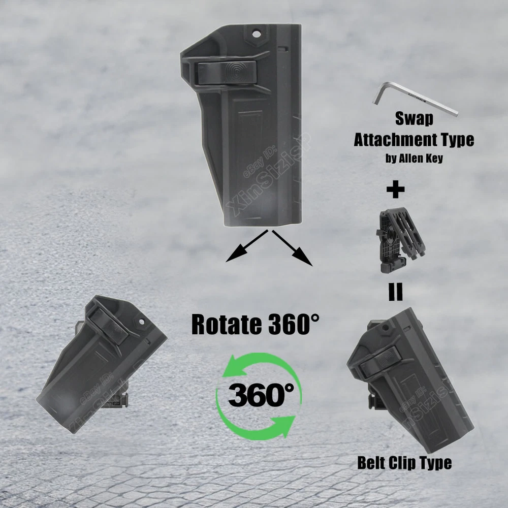 High Quality Military & Police Grade Polymer OWB Holster Specially Designed For Fast Draw During Duty Or Shooting Competition. Weapon Compatibility - Outside Waistband Tactical H olster for Non-Railed Versions of 1911 Models (For 9mm, .40 only). Holster fit 1911 Holster fit Dan Wesson Dan Wesson Specialist 5" 9mm Luger Dan Wesson Guardian 4.25" 9mm Luger 1911 Holster fit Ed Brown Ed Brown Special Forces 5" 9mm Luger Ed Brown Kobra Carry 4.25" 9mm Luger 1911 Holster fit Kimber Kimber 1911 5" 9mm Luger Kimber 1911 Pro 4" 9mm Luger Kimber Custom II 5" .40 S&W Kimber Pro Carry II 4" .40 S&W 1911 Holst er fit Nighthawk Custom Nighthawk Custom Talon 5" 9mm Luger 1911 Holste r fit Rock Island Armory (Armscor) Rock Island Armory 1911 Ultra FS 5" 9mm Luger Rock Island Armory 1911 FS Tactical 5" .40 S&W 1911 Hols ter fit Springfield Springfield 1911 EMP Champion 4" 9mm Luger Springfield 1911 Loaded 5" 9mm Luger Springfield Armory 1911 Loaded 5" .40 S&W Springfield Armory 1911 Loaded Target 5" .40 S&W 1911 Hols ter f it STI International (Staccato) STI Trojan 5" . 9mm Luger 1911 Hols ter fit Taurus Taurus 1911 5" 9mm Luger Taurus 1911 Commander 4.2" 9mm Luger 1911 Holste r fit Walther Walther Colt 1911 A1 5" .22 LR 1911 Holste r fit Wilson Combat Wilson Combat CQB 5" 9mm Luger ( I t perfect fit the 1911 gun without Optic Mount Mini Sight a bove on the end of the barrel , but also without laser and embedded chassis, and flashlight style ) Ease And Comfort Push side buttons to achieve the fast opening and closing, unique design allows for belt carrying or vest carrying, perfectly used by duty holsters, uniformed law enforcement officers, security personnel, military personnel, private persons, and shooting sports holsters. And it fits closer to the body which can achieve better concealment under clothes. High S afety Secure Level II Retention - Auto-locking system restrain pistol in the holster to ensure ultimate safety, activate the release by pressing the button with the index finger to achieve gun access Adjustable Easily set Holster 360 degrees to your desire position with Allen key, compatible belt width up to 2 inch Tough & Durable Material Custom-molded body made of polymer stronger than leather that will wear out, adapt to every bad environment In the Package: · 1*Holster with Paddle Attachment · 1*Allen Key Shipping: Ships same day or next except Sundays and Holidays ! Free shipping! Ship by USPS First Class Package. 100% MONEY BACK GUARANTEE. Any question please be free to contact with us First .Thanks!