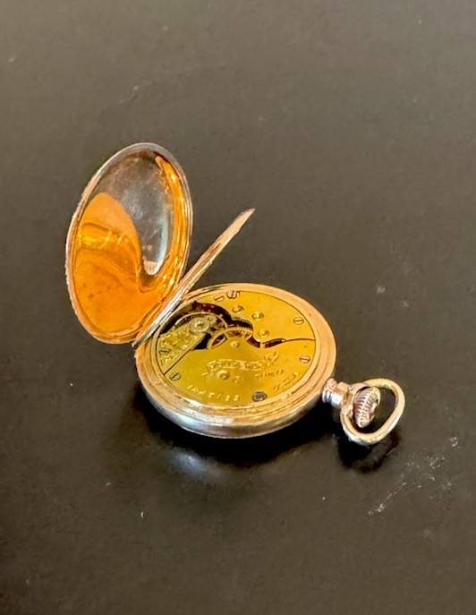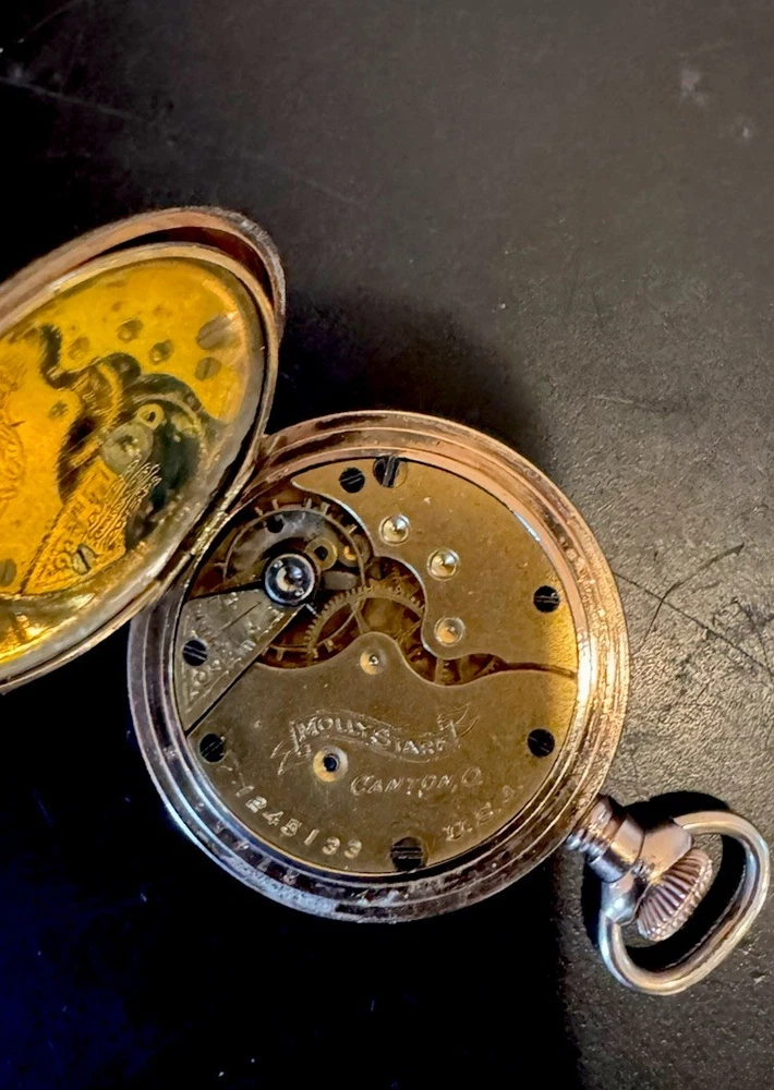 You’re Considering a 1912 HAMPDEN MOLLY STARK Pocket Watch Hunter Case 7 Jewels. Size 0 Works Great. Push lever pops open face. Beautiful. Shipped securely.