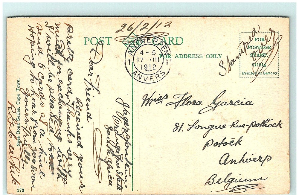 1908 Transvaal South Africa vintage postcard with River postmark S02-1565