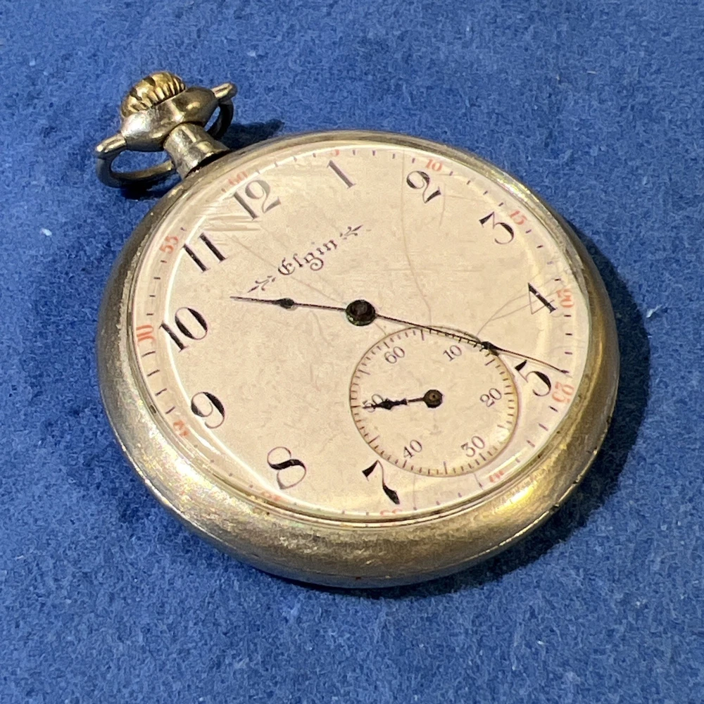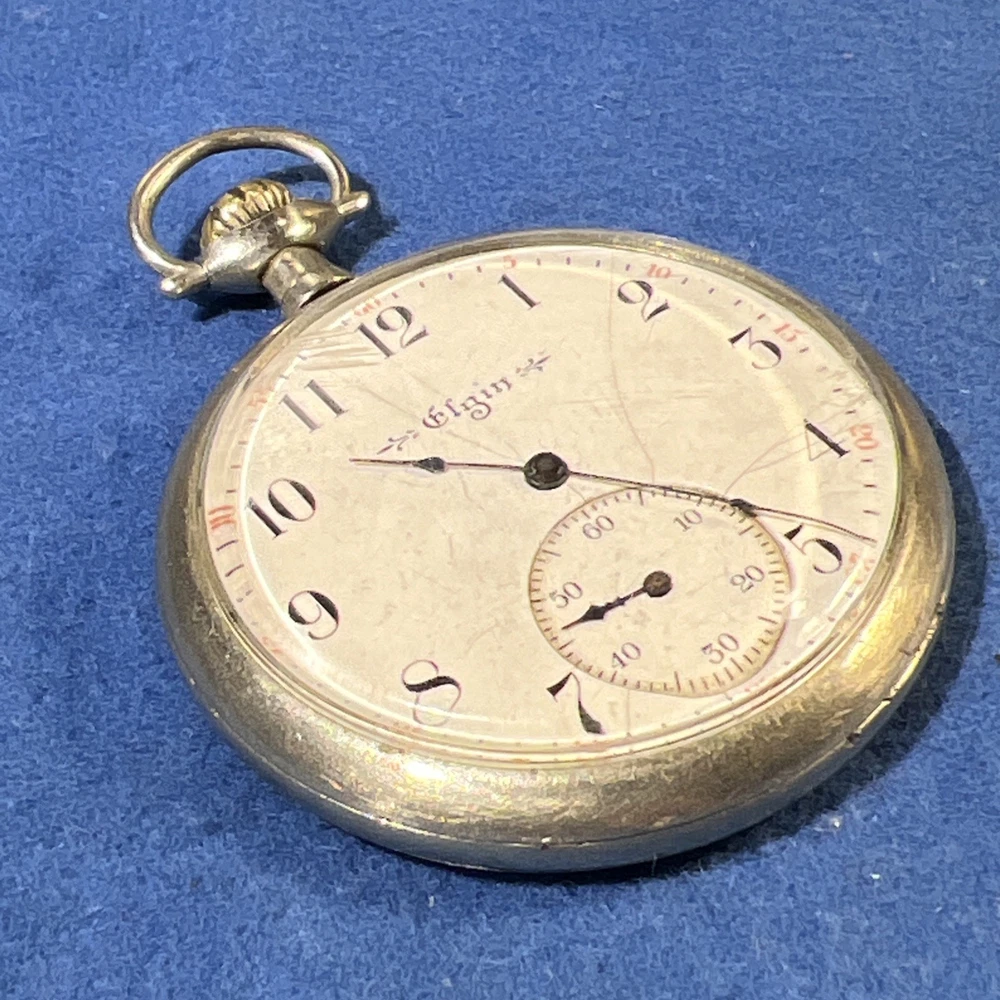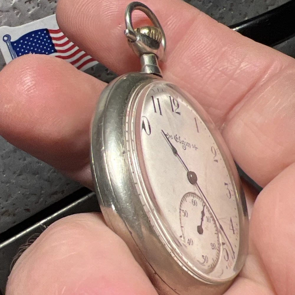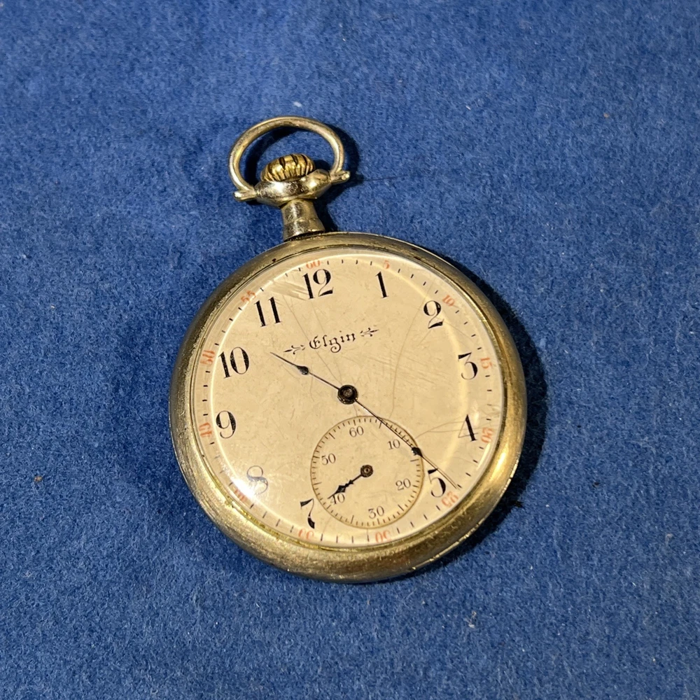 This vintage 1917 Elgin 12s pocket watch is a true piece of history! The golden-gilded 7-jewel movement still winds up smoothly, and the second hand runs beautifully—such a cool find for collectors. While the hour and minute hands need adjustment (they move when setting time but don't advance on their own), it’s a fantastic project watch or for parts. The 44mm open-face case has great character, and the Elgin heritage shines through. Perfect for someone who loves restoring timeless pieces!
