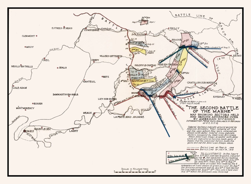 1918 Military Map of the Second Battle of the Marne WW1 Decor Poster Print