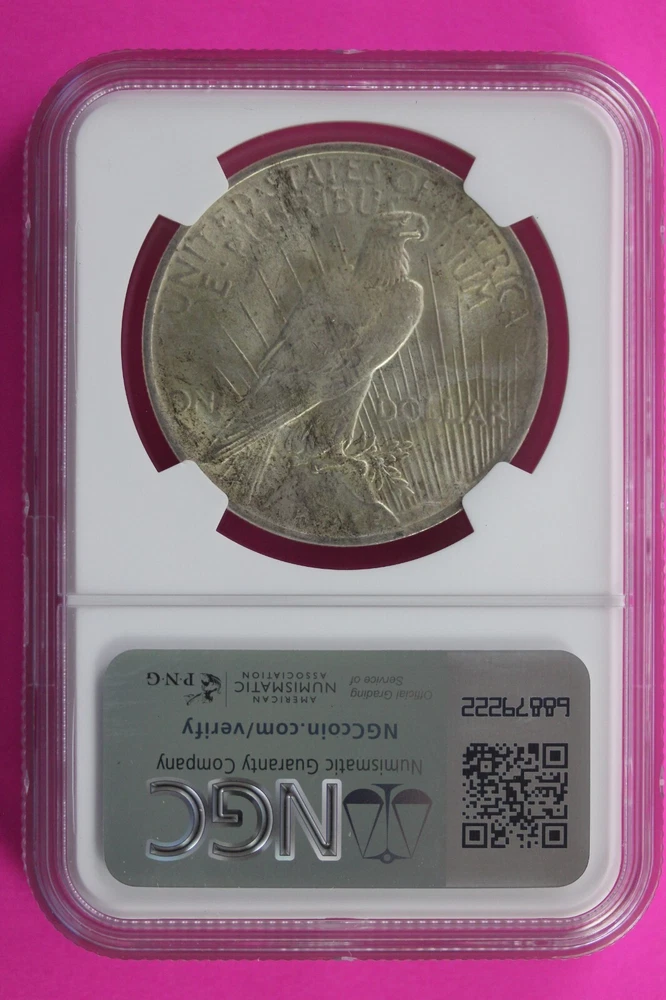 Coin: Peace Silver Dollar Seller Notes: “You will receive the exact same coin in the pictures. The background I use for pictures is colored.” Composition: Silver Certification: NGC Certification Number: na Brand/Mint: U.S. Mint Fineness: 0.900 Brand: US Mint Country/Region of Manufacture: United States Total Precious Metal Content: .7734oz Strike Type: Business Grade: MS 65 Precious Metal Content per Unit: .7734oz Year: 1923