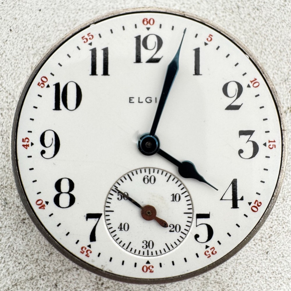 Antique 12s 1925 Elgin 15 Jewel Mechanical Pocket Watch Movement 315 USA Product Description Item: Pocket Watch Movement Brand: Elgin Movement: Mechanical Production Year: 1925 Country: USA Jewels: 15 Jewel Gender: Men's Grade: 315 Size: 12s Product Measurements Diameter: 39.5mm Product Condition Overall Condition: Fair, overall condition for its age. Functions: Not running, the Balance staff is broken. Dial: The dial is in good condition. Hands: There is discoloration on the hands.