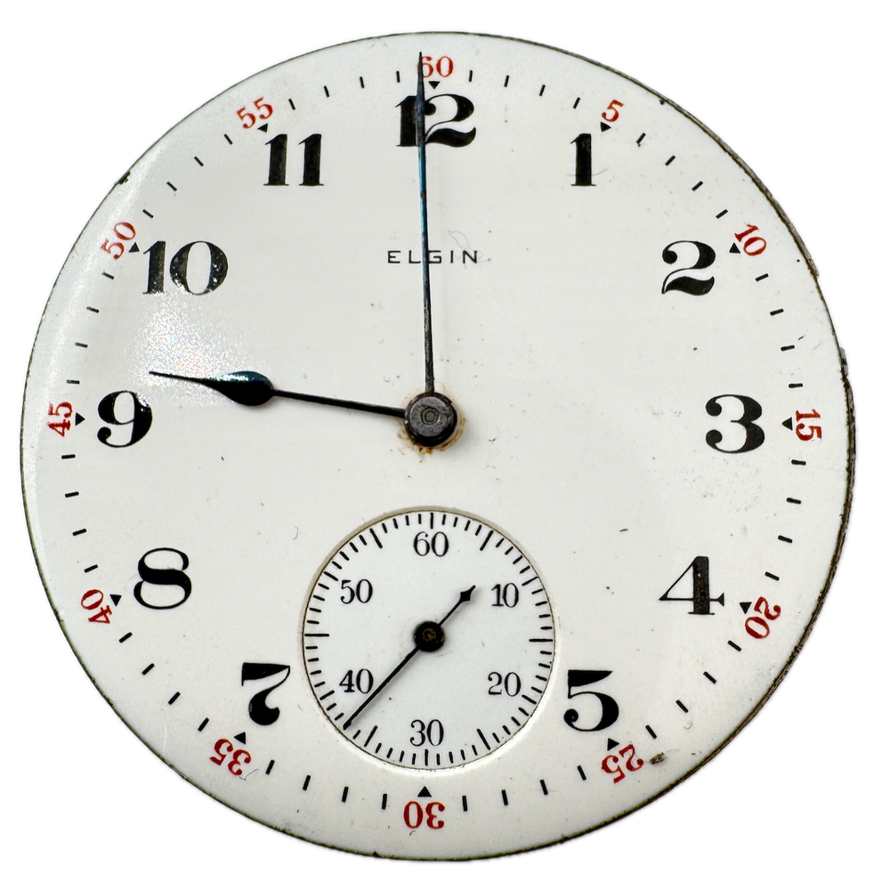 Antique 16s 1927 Elgin 15 Jewel Mechanical Pocket Watch Movement 313 USA Product Description Item: Pocket Watch Movement Brand: Elgin Movement: Mechanical Production Year: 1927 Country: USA Jewels: 15 Jewel Gender: Men's Grade: 313 Size: 16s Product Measurements Diameter: 43mm Product Condition Overall Condition: Fair, overall condition for its age. Functions: Running, but may be in need of service. This means, it can run unreliably, start or stop and timekeeping is not guaranteed. Dial: The dial is in good condition. Hands: There is discoloration on the hands.