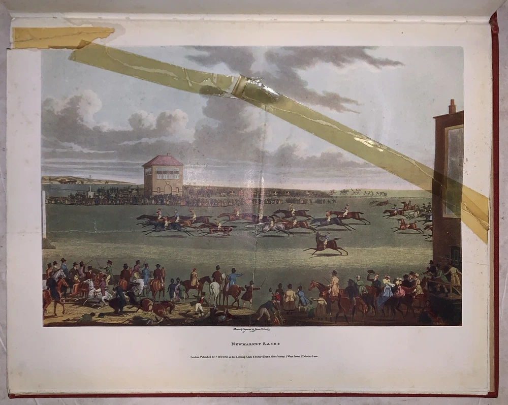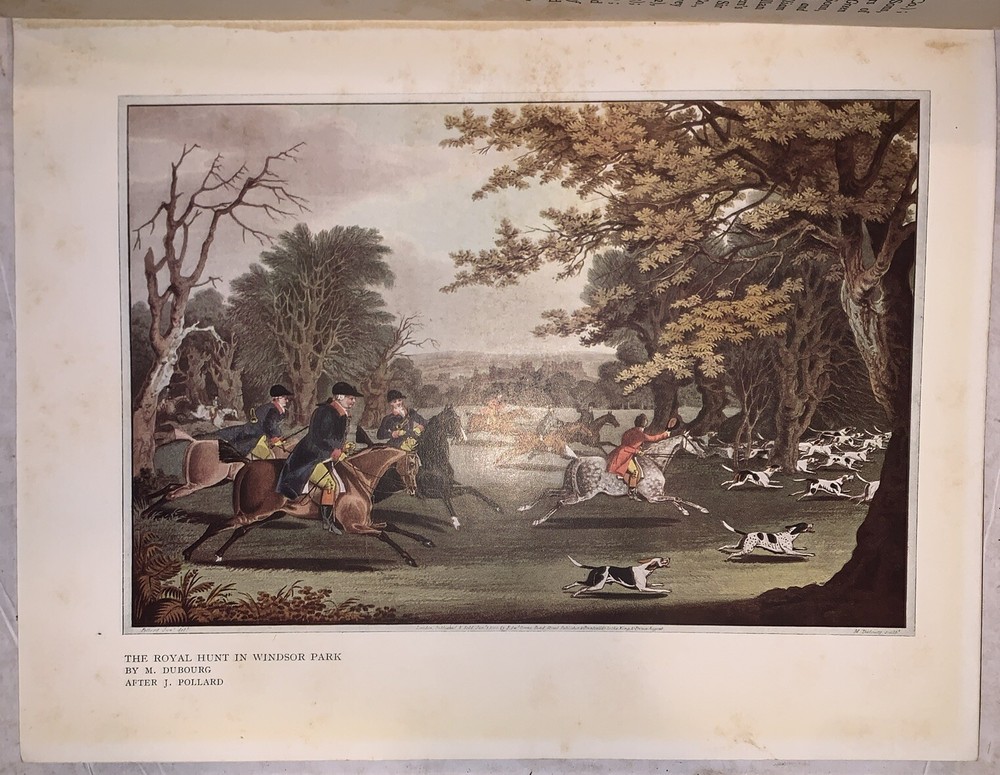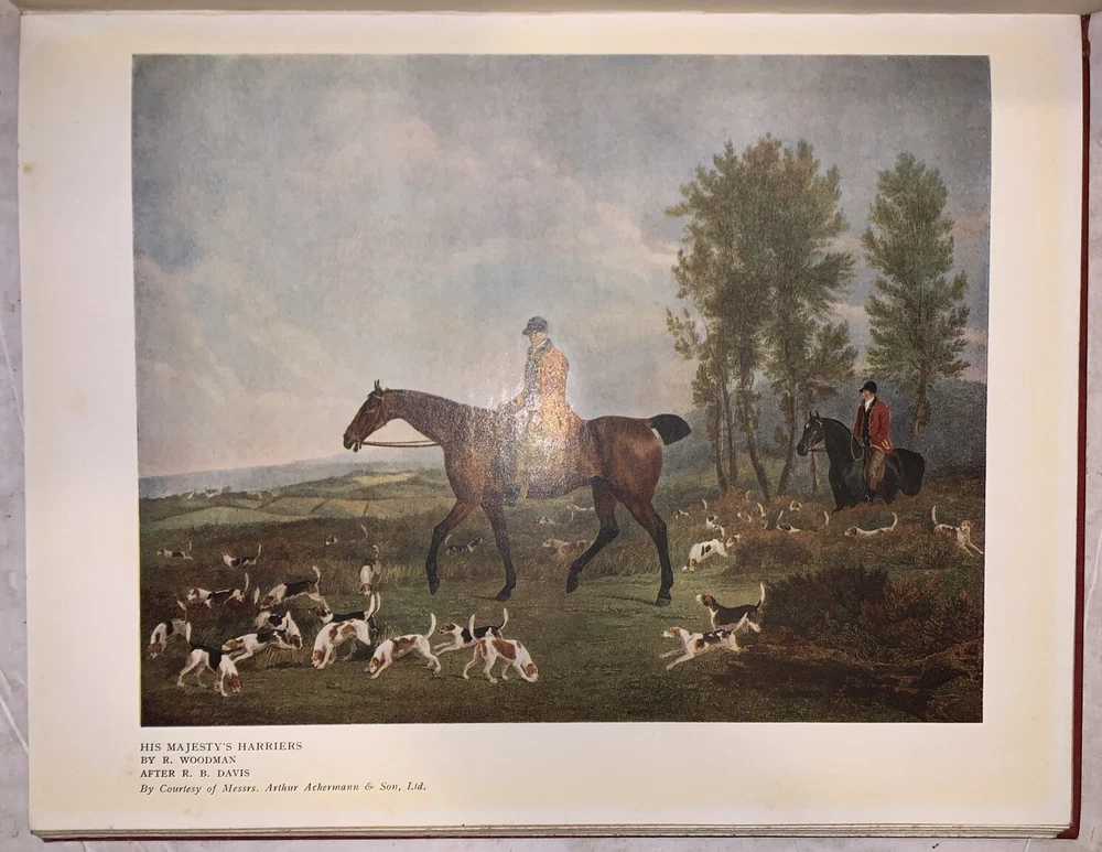 The Connoisseur Series of Books for Collectors, Edited by C. Reginald Grundy Sporting Prints of the Eighteenth and Early Nineteenth Centuries By F. Gordon Roe With an Introduction by C. Reginald Grundy 48 Plates in Colour - 2 in Monochrome New York: Payson & Clarke Ltd 1927 First American Edition Quarto, xiv, 50 pages followed by a large section of colored plates. Publisher's original gilt lettered red cloth covered boards, top edge gilt. Some rubbing and wear, spine sunned, hinges cracked, tape repairs and tears to a few of the plates, discoloration and foxing, else in good condition. If you have any questions, feel free to ask, and don't forget to check out my other listings.