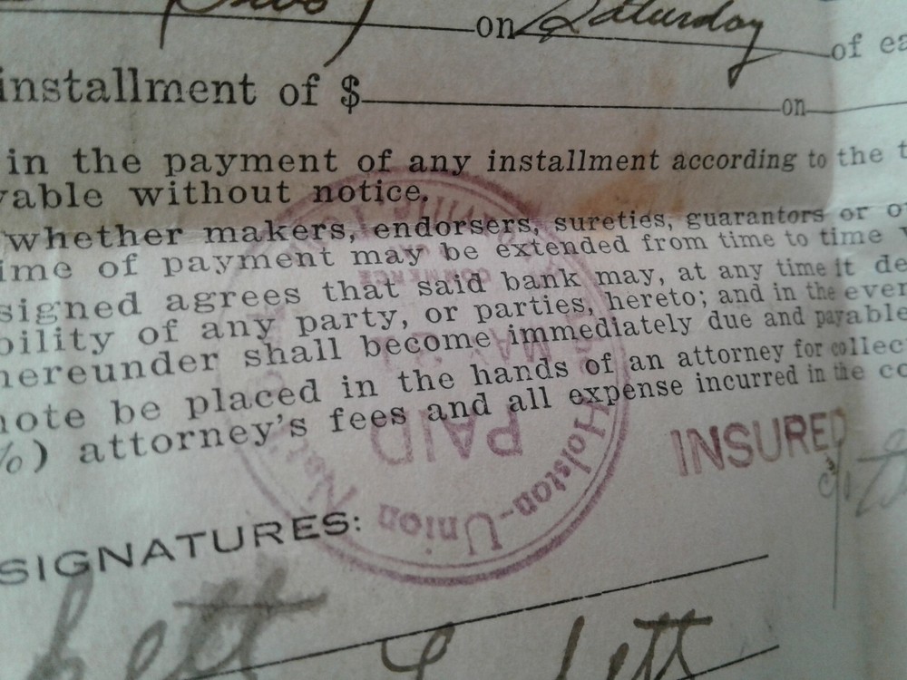 1929. HOLSTON UNION NATIONAL BANK INSTALLMENT LOAN DEPARTMENT receipt. Stamped. Filled in. Overall good. Signs of age. Crease lines from storage. SHIPS FIRST CLASS MAIL. USPS.