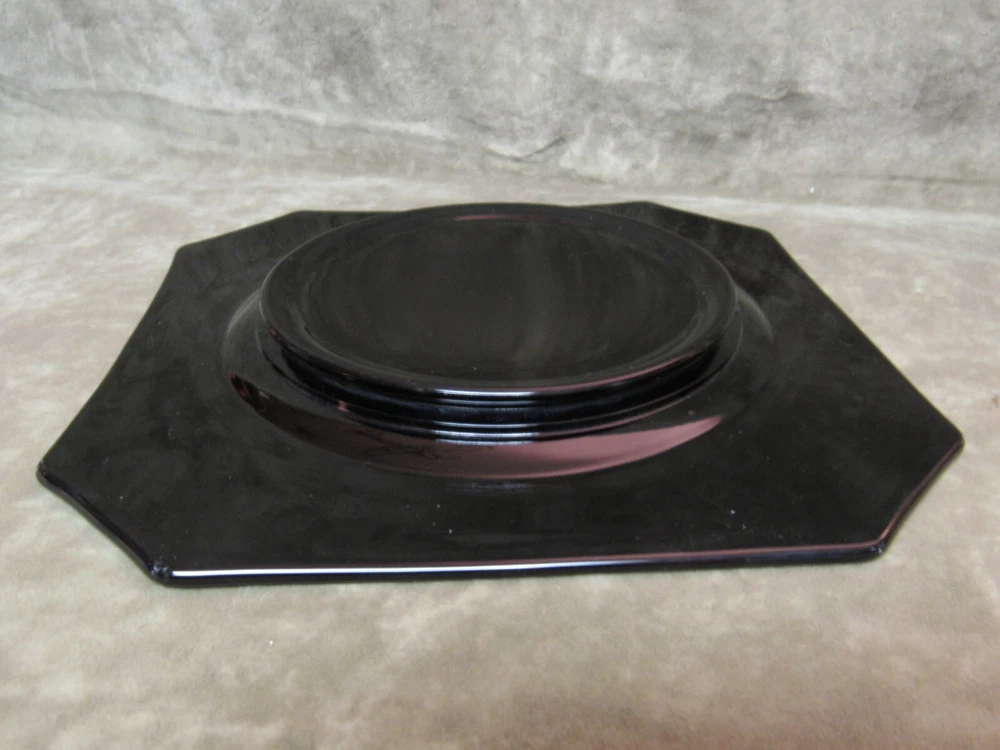 1930's McKee Black Amethyst Glass Clico Salad Plate Lot of 8 Pieces Art Deco