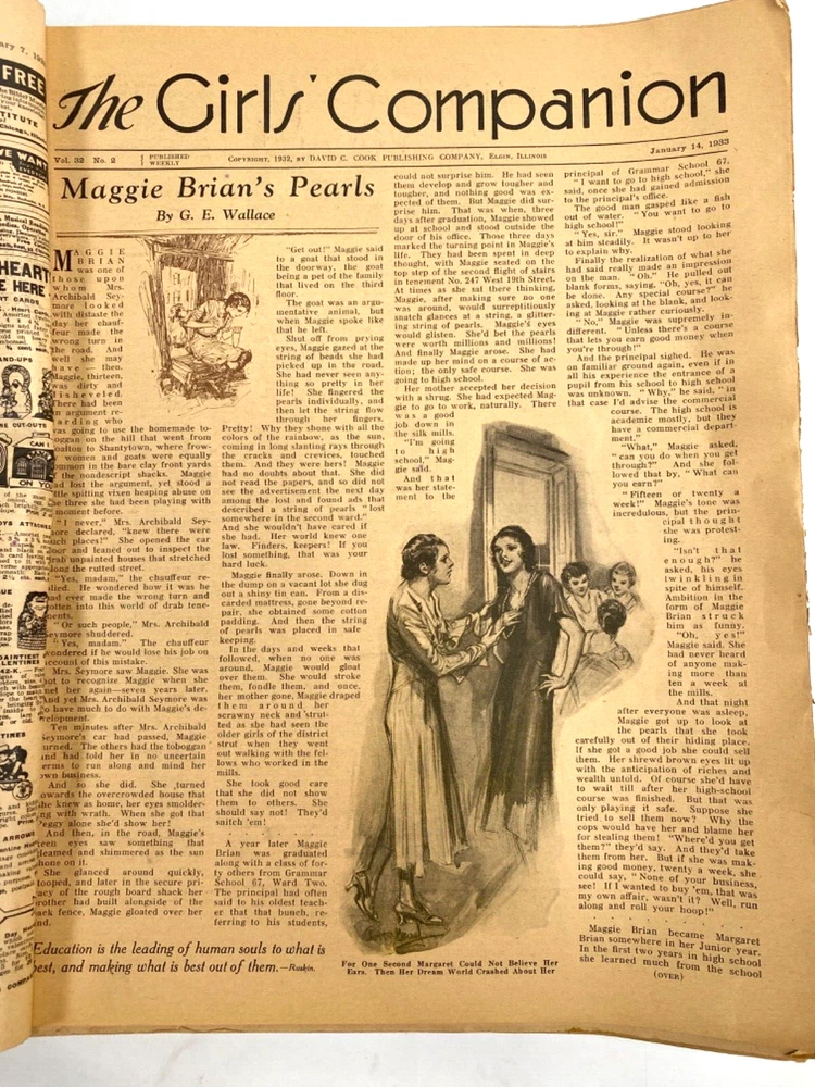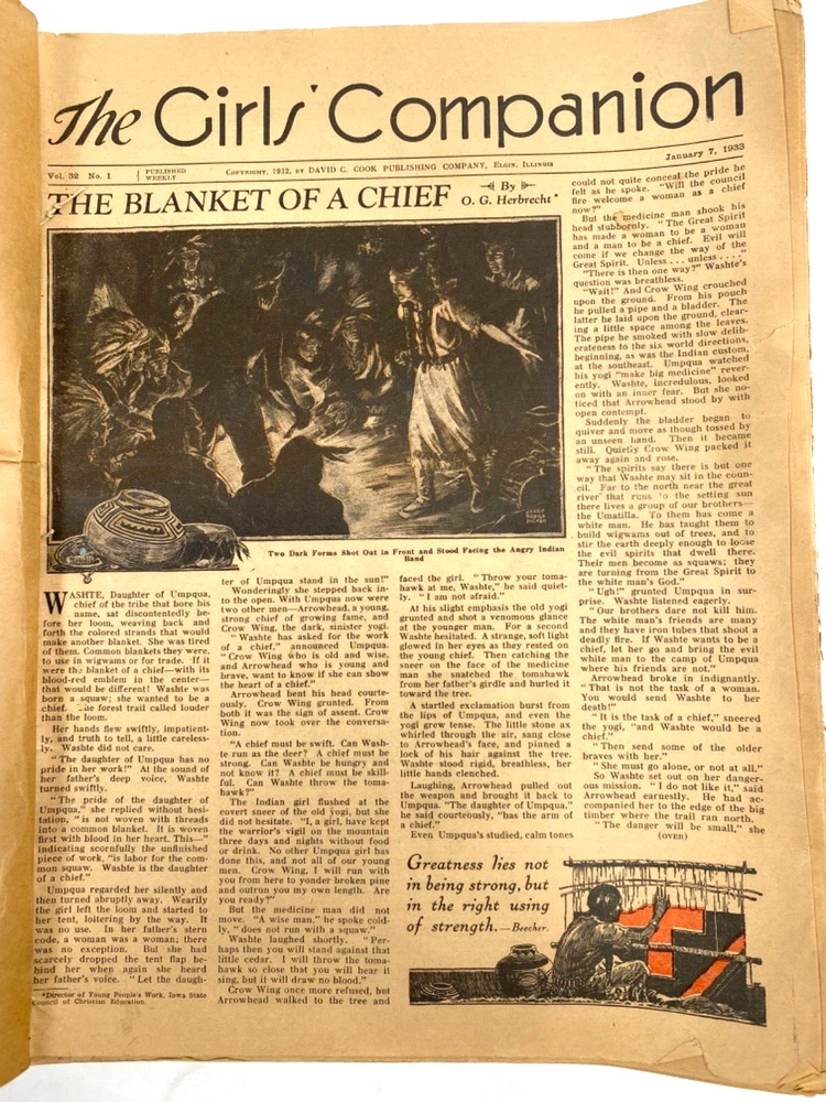 THE GIRL'S COMPANION Antique lot of 52 issues 1933 Entire year of magazine bound in a homemade cover. Each issue is 8 pages long. Sizes are 11" x 14" inches Visit our store for 2,000+ items – Thank You!