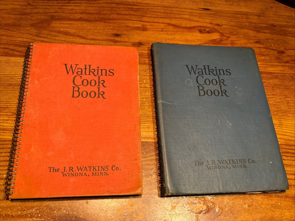 Both have some staining. Blue book is missing first few pages. Red book is in pretty good condition