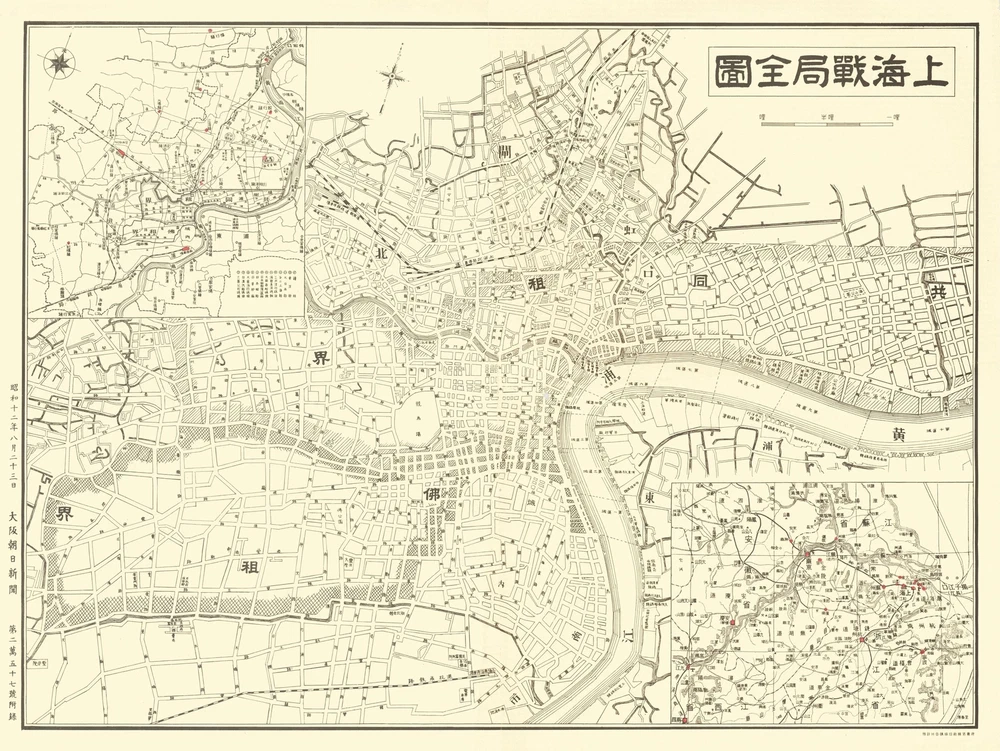 1937 Japanese Map of Shanghai Settlement Second Sino-Japanese War Poster Print