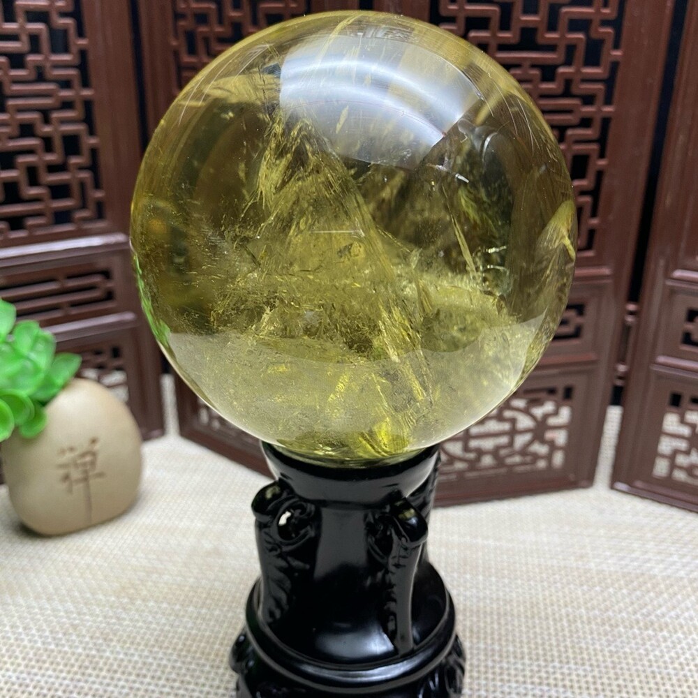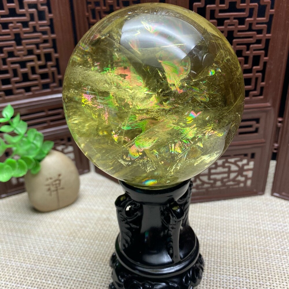 1.93LB Natural Citrine Quartz Sphere Rainbow Crystal Ball for Reiki Healing 87mm