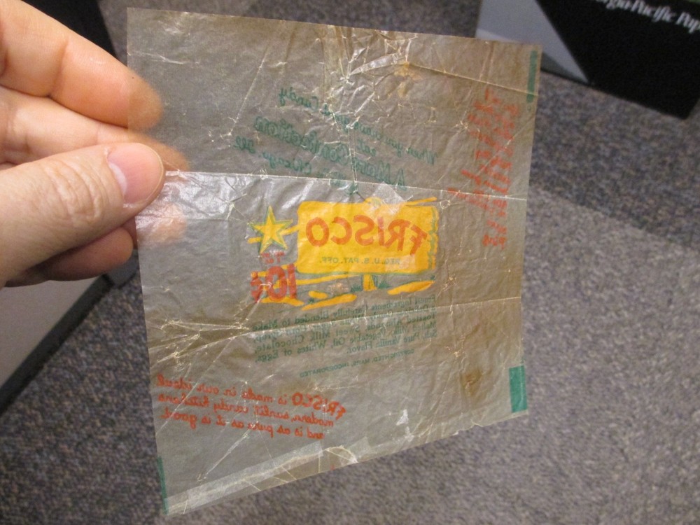 This vintage 1940s Mars Frisco wrapper is a true collector's gem! The rare 10-cent chocolate almond bar wrapper has been carefully preserved with archival tissue repair, making it a fantastic piece of candy history. Part of an incredible 200+ wrapper collection from the 1930s-40s, it’s a nostalgic treasure for any enthusiast. The backstory adds charm—once owned by Betty Briggs, whose collection brings these sweet memories to life. A must-have for vintage wrapper collectors!