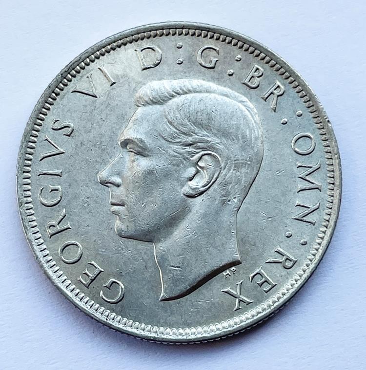 GEORGE VI SILVER HALF CROWN COIN 1945 Description GEORGE VI SILVER HALF CROWN COIN 1945 King George VI silver half crown dated 1945. 500 grade silver NOT 925 sterling silver.. Dimensions: 32mm diameter. Weight: 14.1g Excellent condition. Get images that make Supersized seem small. Showcase your items with Auctiva's Listing Templates! THE simple solution for eBay sellers. Track Page Views With Auctiva's Counter