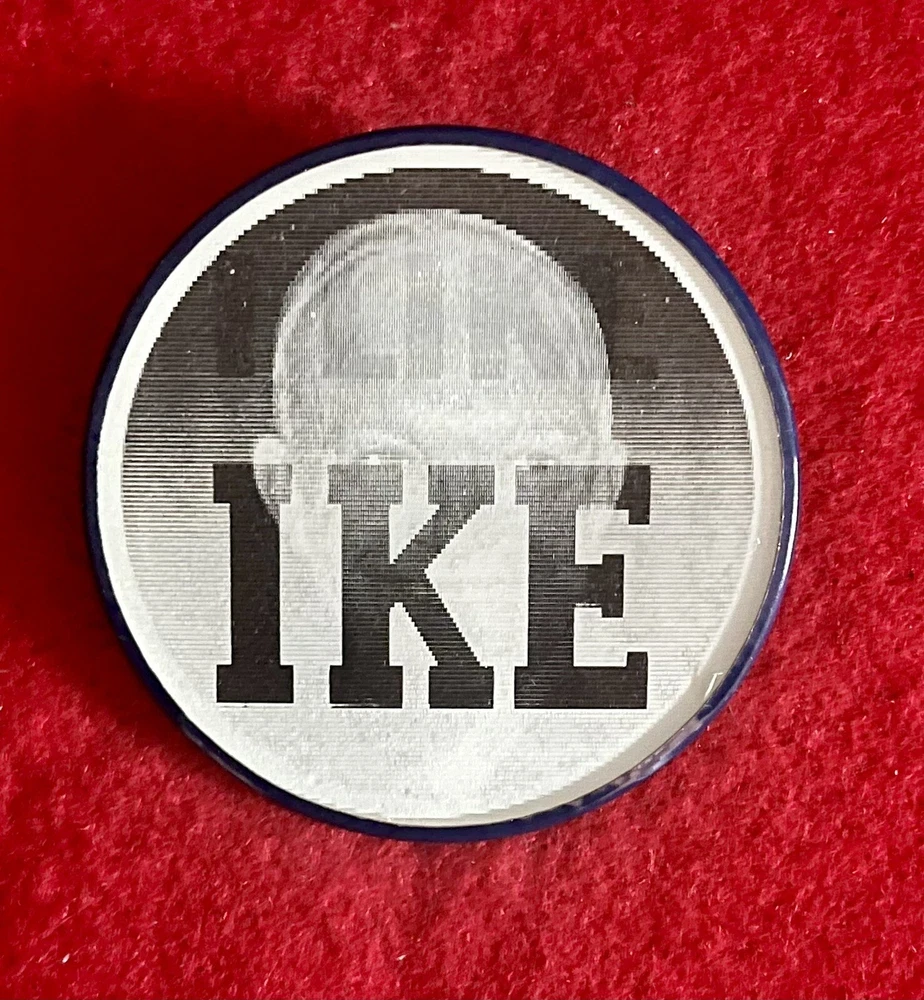 1950s Dwight Eisenhower Flasher Campaign Button I LIKE IKE Version Variant-Vue