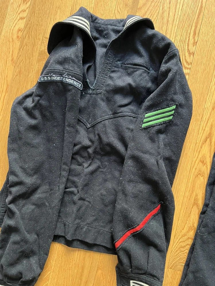 Measurements in photos. 1950s Naval Uniform - Pants, Shirt Petty Officer 3rd Class, USS Independence
