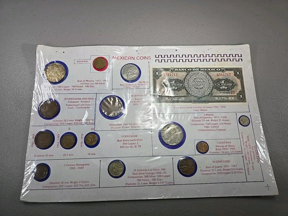 Add this rare and unique collection of Mexican coins and bills to your treasure trove today. This assortment of coins with various denominations and historical significance ranging from 1905 to now is perfect for any collector. Each of these coins and bills is circulated and uncertified, making them an authentic addition to any collection. The coins and bills are from Mexico and have been carefully curated for your viewing pleasure. This collection is a must-have for any true coin collector, as it showcases the rich history and cultural significance of Mexico. Don't miss your chance to own this special piece of history. Thank you so much for looking. This item will be carefully packed and shipped to you by our family. We reserve the right to use the best shipping service for your address. We will combine shipping on multiple orders placed at the same time. Please let us know before paying for it. Please contact me with any questions.