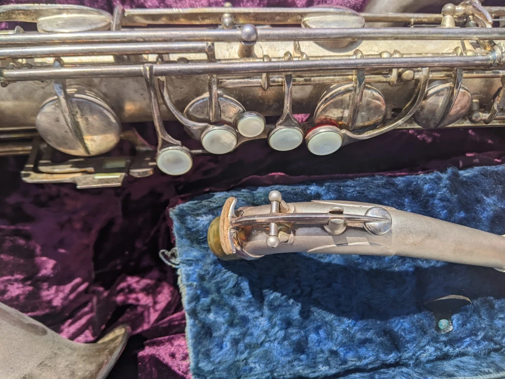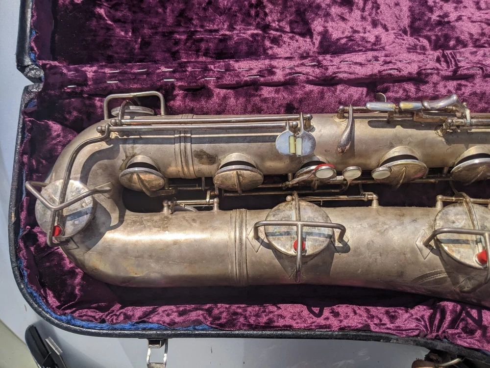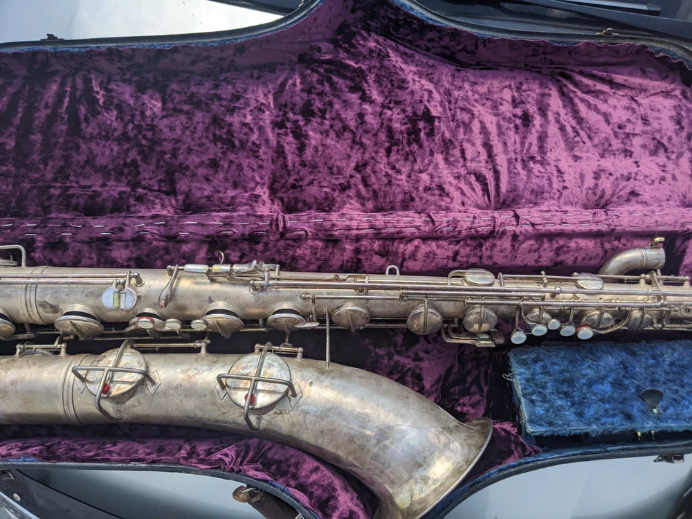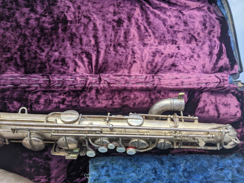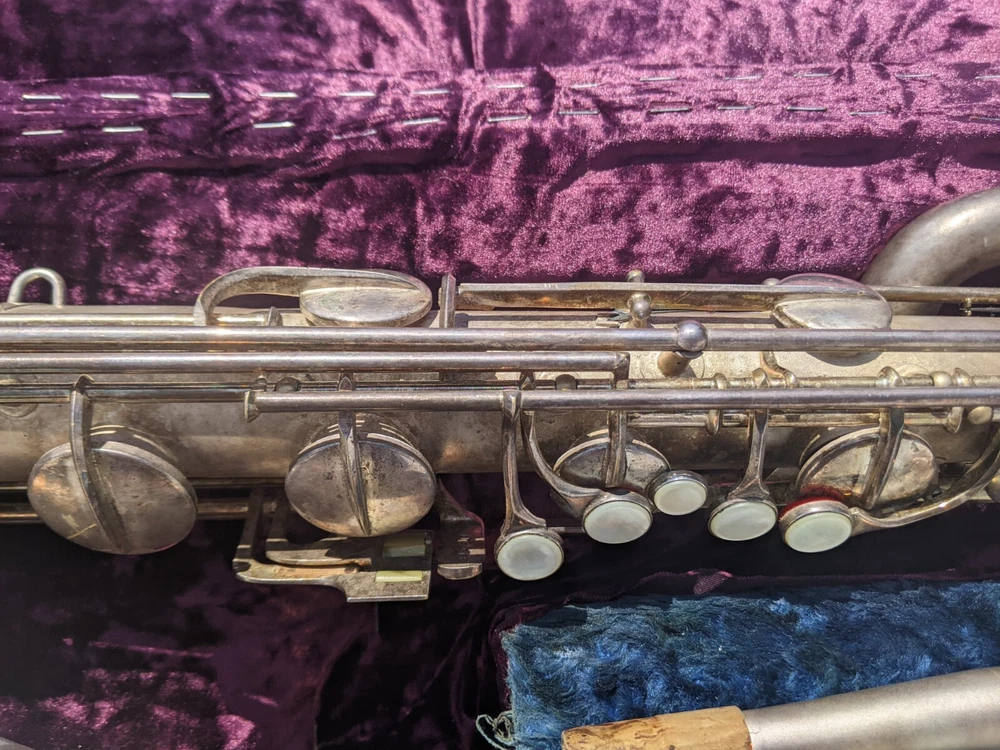 This is a low Bb baritone. Serial number: 345514 It was made in 1952. This horn has no dents. Padded original conn case was relined and repadded. These cases are great because they fit on the carry-on section in airplanes. The neck is a custom neck that plays easier with more power than the original one. The original neck is not included. The saxophone has had an overhaul done at one time with white roo pads. Currently, it may need servicing to be in excellent playing condition although this might be an opinion. Cosmetically it looks great. I'm selling as-is, as-shown, since it's a vintage horn.