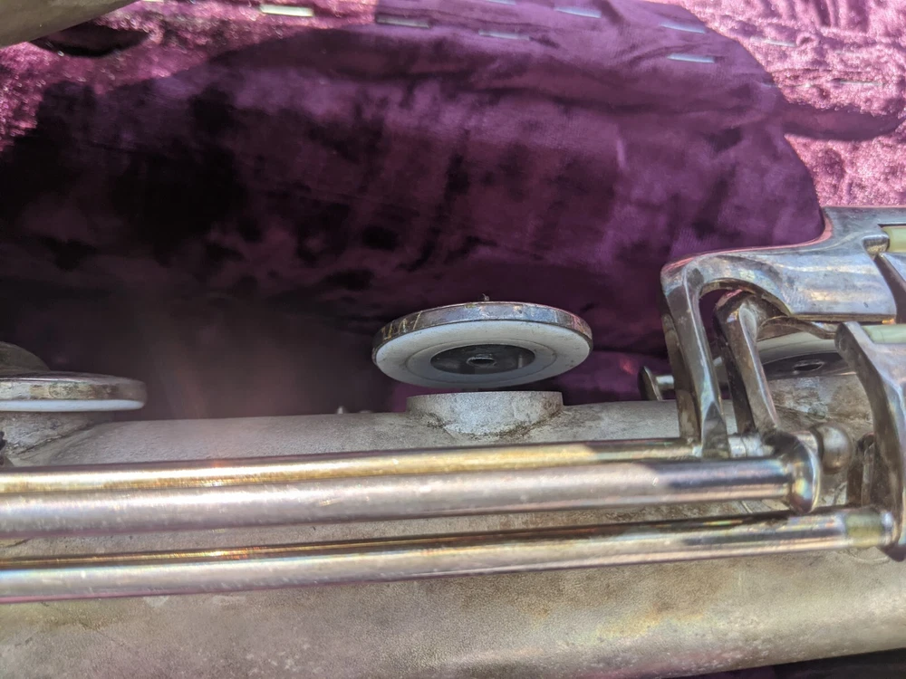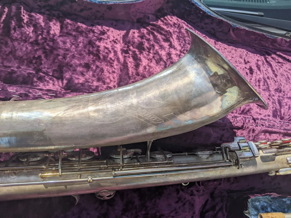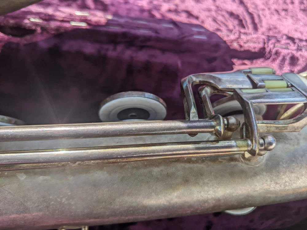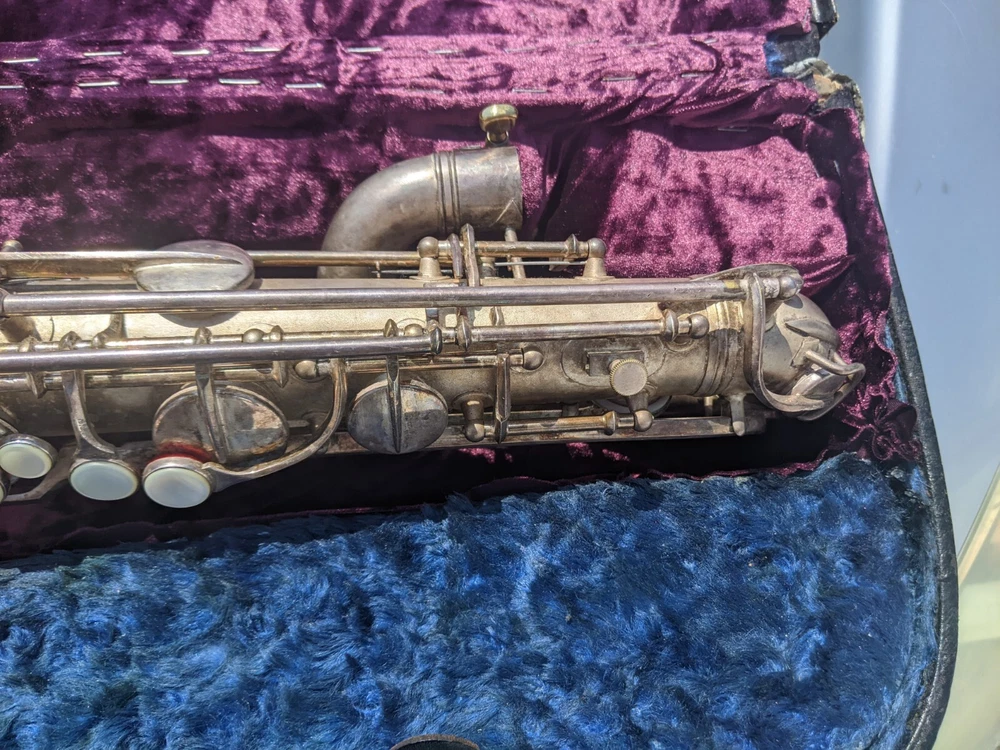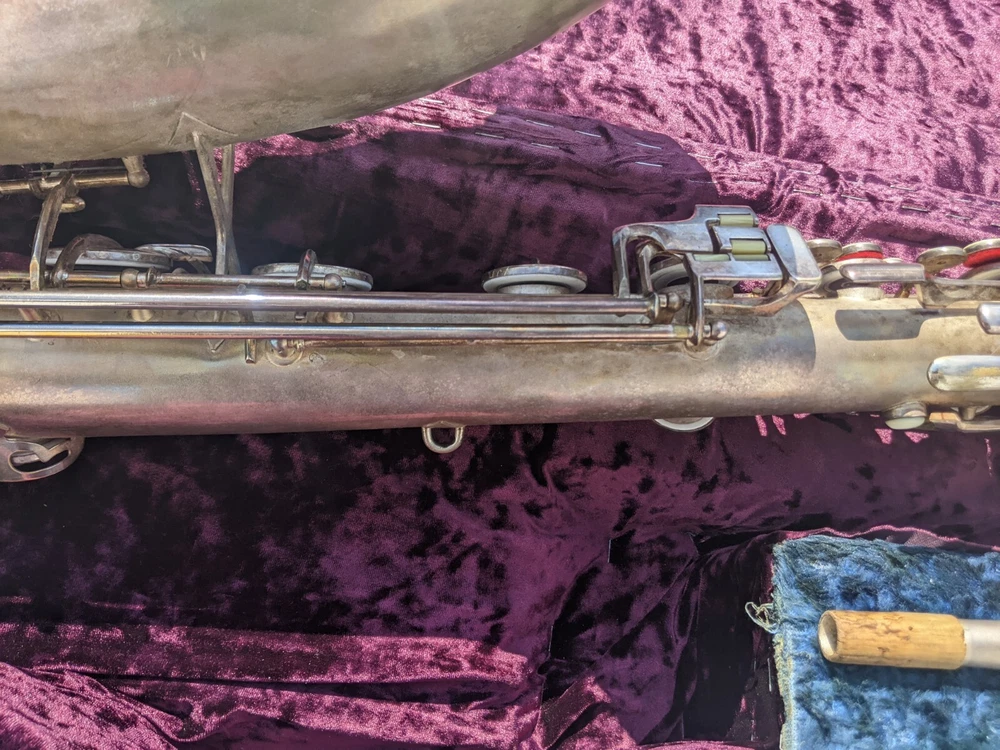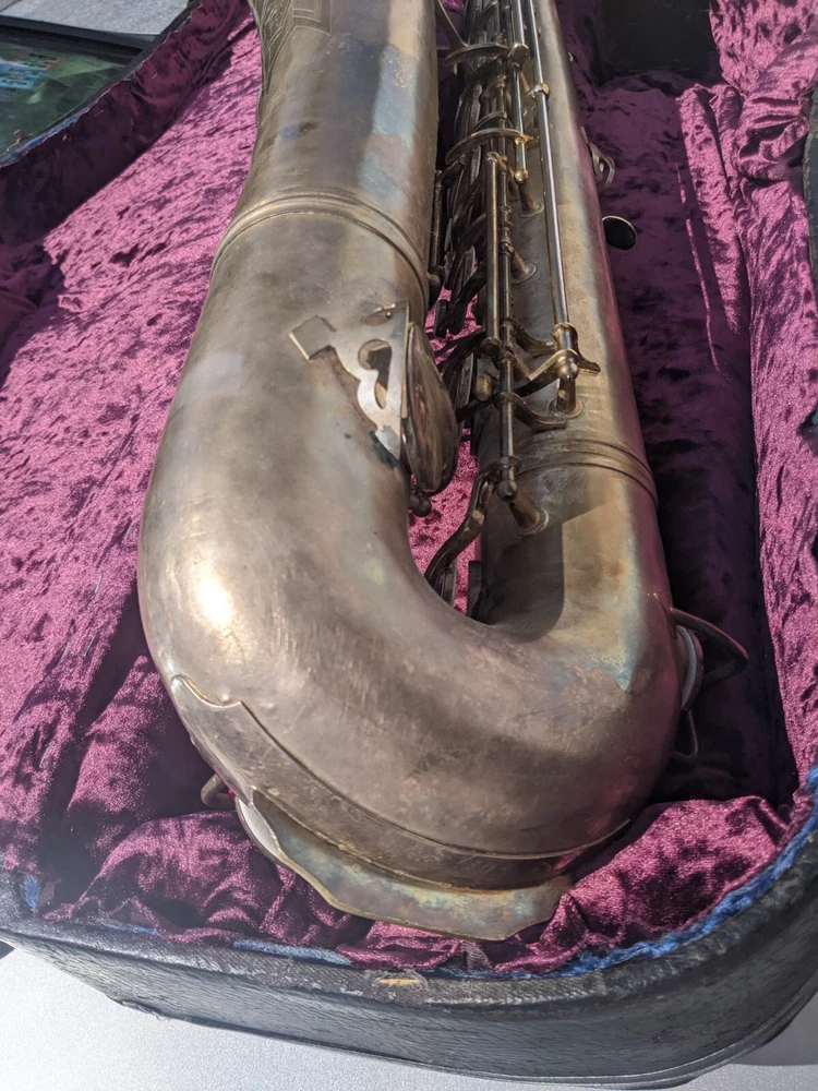 This is a low Bb baritone. Serial number: 345514 It was made in 1952. This horn has no dents. Padded original conn case was relined and repadded. These cases are great because they fit on the carry-on section in airplanes. The neck is a custom neck that plays easier with more power than the original one. The original neck is not included. The saxophone has had an overhaul done at one time with white roo pads. Currently, it may need servicing to be in excellent playing condition although this might be an opinion. Cosmetically it looks great. I'm selling as-is, as-shown, since it's a vintage horn.