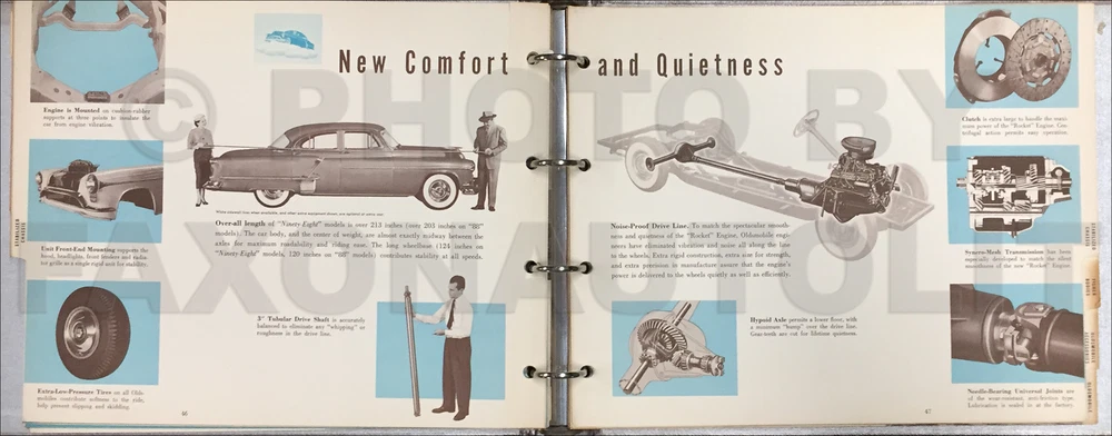 Item Description This is a dealer-only album that salespeople used. You can use this book to restore your vehicle to its historic best, upgrade with factory options, or to authenticate equipment already installed. You will find the following information in this book: Pictorial Dealer Album -- You will find out the dealer's "inside information" that is far more detailed than a sales brochure. You'll see photos and details of 1952 styling and features. Some pages focus on specific features like engine, chassis, body, suspension, steering, brakes, etc. Other pages focus on specific models, showing an exterior illustration, an interior illustration, and describing features. You'll see 7 pages showing pictures and giving paragraph descriptions of accessories, such as vanity mirror, Speakers, air conditioning, radio, seat covers, and much more. It concludes with 4 pages of specifications. Buy now to be one of the few collectors to own this privileged information. Item Specifications Exact Title: "Oldsmobile 1952 Feature Folio" Page Count: 66 Dimensions: 13.25 x 10.00 x 1.75 OEM Part Number: none Pay Media Mail shipping on 1 item, get FREE US shipping on 2nd item if shipped together. Find more in our store Click here for more 1952 Oldsmobile manuals. Model-Year Application Covers all 1952 Olds models. 1952 Oldsmobile Deluxe 88 1952 Oldsmobile 98 1952 Oldsmobile Super 88 Shipping Policies Shipping U.S. Super saver postal media mail with delivery confirmation is the lowest-priced option. Media mail typically takes 7-14 business days to arrive in the continental US.. To AK, HI, PR, and APO, media mail takes a month so we recommend priority mail instead. Optionally, get this item sent to the US via postal Priority Mail with delivery confirmation for an additional cost (see shipments tab). Please request a quote for combined Priority Mail shipping, since multiple items may require extra shipping costs. Shipping Overseas Economy shipping does NOT include tracking. Standard shipping usually includes tracking. International shipments typically take 1-3 weeks for delivery, but can take longer. Please supply a phone number with your order to ensure timely delivery of your package. Shipping Canada Shipment to Canada includes tracking. We pay GST. Books and CDs are duty free, so you should owe nothing when your package arrives. Shipment to Canada typically takes 2 weeks for delivery. Hours Open 7:30 am to 4:30 pm pacific time weekdays, 8:30 am to 1:30 pm Saturdays. Closed Sundays and holidays. Finally, Buy With No Risk from the Auto Literature Experts Pledge of Honesty We are a high tech company with old-fashioned integrity. Our Promise of Value: When you buy from Faxon, you know that the book you get will cover the years and content listed in the long description. We got to be the largest sellers of out of print auto books by becoming the experts on what you need to get your project on the road. Our Assurance of Security: We have never sold or shared a phone number, email address, or street address. We have never had a credit card number stolen. Your personal information is safe with us. Backed by More than Forty Years of Professional Experience: For more than forty years, we have been researching auto literature. We have built a library of rare manuals and compiled lists of manuals that exist. No other company has invested so much time and effort to find the best book for your vehicle. We buy from every major printer in the US in order to offer you the finest quality books and the best selection anywhere. Powered by SixBit's eCommerce Solution