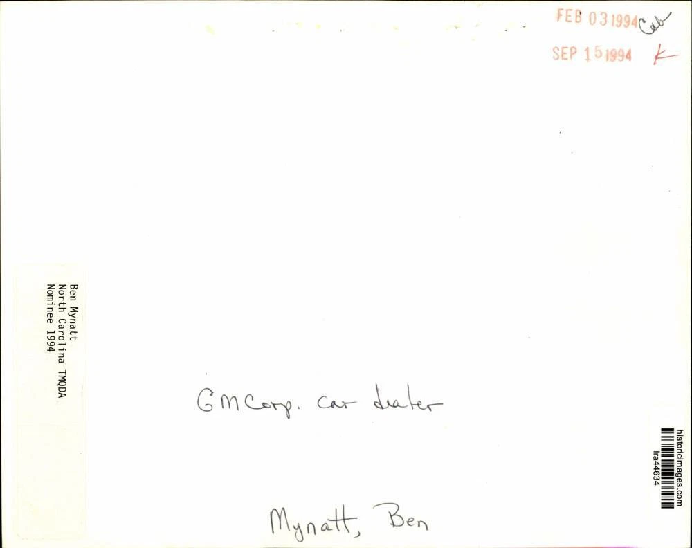 ebay template Note: Please study the images carefully to determine the condition of this vintage photograph, as it may not be in perfect condition. It may contain wrinkles, cracks, and possibly even tears due to its age and how it was handled before it got to us. A scanner may interpret colors and contrast differently than human eyes will, so it is possible that the actual photograph may be slightly darker or lighter in person. This vintage photograph is offered for sale as a collectible item and conveys no transfer of copyright. 1954 Press Photo Ben Mynatt, North Carolina car dealer - lra44634 This is an original press photo. Ben Mynatt, North Carolina TMQDA, nominee. Ben Mynatt, GM Corporation car dealerPhoto measures 8 x 10inches. Photo is dated 2-3-1954. PHOTO FRONT PHOTO BACK Historic Images Part Number: lra44634 FAQs Q: Can I just download a digital version instead? A: No, we sell only vintage originals and do not make or distribute any copies, including digital ones. Q: Do you combine shipping and invoices? A: Multiple photos won on the same seller ID combine automatically through the eBay checkout process. If you encounter problems with this, send us a message via eBay messaging and we will send you an invoice. Due to eBay limitations, we cannot combine items won on our different seller IDs for a single shipping charge. Q: How quickly do you ship the items once paid? A: We ship within one business day after your payment clears. If you do not receive an "order shipped" email from us by the close of the second business day from submitting payment, please e-mail us via eBay messaging. Q: How do you make sure my photograph arrives safely? A: We package each order between two cross-corrugated pieces of cardboard to ensure that the package is as difficult to bend as possible. We then wrap each order in a plastic sheet to help protect against moisture. We want you to rest assured that we take every precaution to ensure that the photograph you receive will be in the same condition in your care as it was in ours. Q: Will the "Historic Images" watermark be on my photo when I receive it? A: No. This is a digital watermark we use to protect our images. It is not printed on the photo. Q: What are your office hours? A: eBay for us is a business, and a very fun one to be in! We are open M-F 9 to 5 (CST). Therefore, we do not return e-mails and phone calls over the weekend. We observe the following holidays: New Years Day, Memorial Day, Fourth of July, Labor Day, Thanksgiving and the day after Thanksgiving, Christmas Eve and Christmas Day. Q: Where did all these vintage photos come from? A: These original vintage photographs are from various news service and newspaper photo archives from locations around the country including: Boston, Detroit, Tampa, Chicago, Denver, Seattle, New Orleans, Milwaukee, Portland, Spokane, and more. We do not copy or reproduce any photographs -- every item is a unique vintage piece that was housed in a news archive. Q: Can I use this photograph in my book/blog/website? A: The short answer is no. There is no transfer of copyright for republication or reproduction with these photographs when you purchase them, and only photographs taken before 1923 are currently automatically in the public domain. Permission from the copyright holder, which usually can be identified from the back of each photo, must be sought to republish or reproduce the image for any purpose. Q: Do you relist items (in case I miss an auction ending)? A: Auction items that receive no bids are relisted in our store (historicimages-store on eBay) as a fixed-price item and at a higher price than the starting auction price. Q: Do you leave feedback? A: Yes, we always leave feedback for buyers. Our software monitors when our buyers leave us feedback, then notifies us that we can leave feedback for the buyer. Rest assured, if you leave feedback, we will do the same! Check out our family of eBay IDs: historicimages01 Sports Photos historicimages02 Entertainment Photos historicimages03 Americana Photos historicimages04 International & War Photos historicimages05 Transportation Photos historicimages06 Photos of All Subjects historicimages07 Entertainment Photos historicimages08 Newsworthy Photos historicimages09 Entertainment Photos historicimages10 Sports Photos historicimages-store Our largest fixed-price selection historicimages-gallery Hand-picked photos Saturday night auctions About Us Historic Images was formed in September 2009, with a handful of scanners working out of a basement to digitize newspaper photo archives. We have since moved out of the basement, and we can now archive thousands of photos per day. Our company has worked with magazines and newspapers from Detroit, Boston, Denver, Seattle, Tampa, Chicago, and New Orleans, just to name a few. We are constantly adding to our inventory, and have assembled an archive of millions of photos to date. As our company evolved, we began our eBay business, which brings thousands of fresh auctions per week to the world's largest online auction marketplace. Our custom software systems and team of great employees allow us to efficiently scan and sell large photo archives online. At the very core of our company's DNA is a strong commitment to customer satisfaction and strict integrity for our product. Our promise to you is that we will do everything in our power to provide you a great buying experience. Copyright 2009 - Present, Historic Images, Inc. Sell Smarter with Kyozou. Inventory and Ecommerce Management