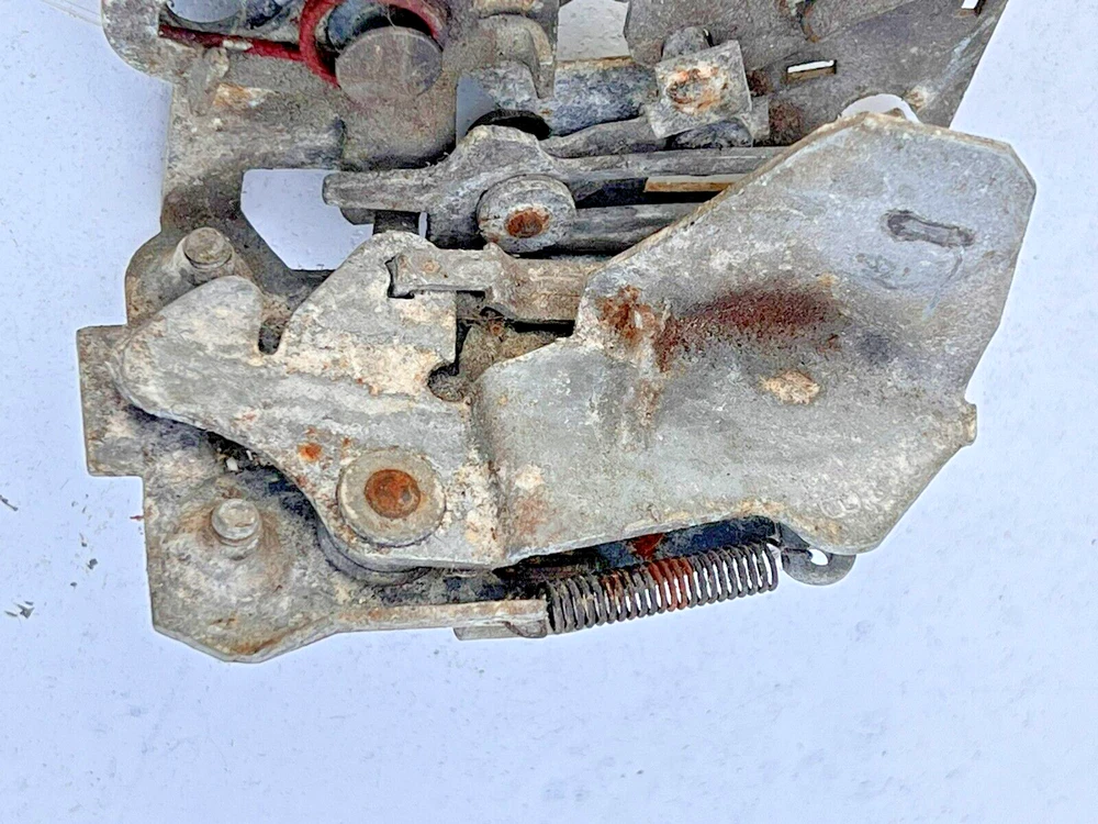 DOOR LATCH LOCK REGULATOR. GOOD USED ORIGINAL CONDITION. MOVES AS IT SHOULD. I BELIEVE THIS IS FOR LEFT HAND REAR DOOR, SEDAN. USE CLOSEUP VIEWER TO BEST DETERMINE CONDITION