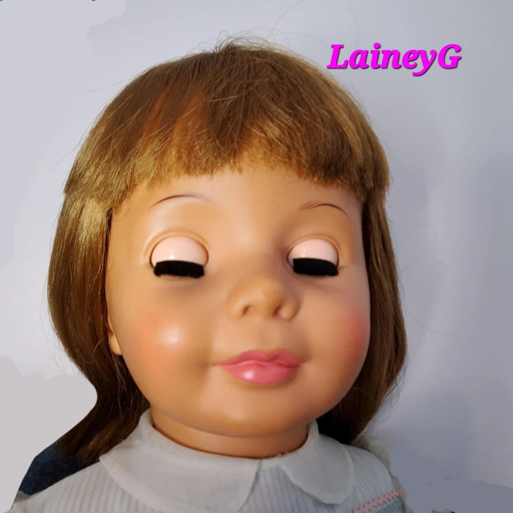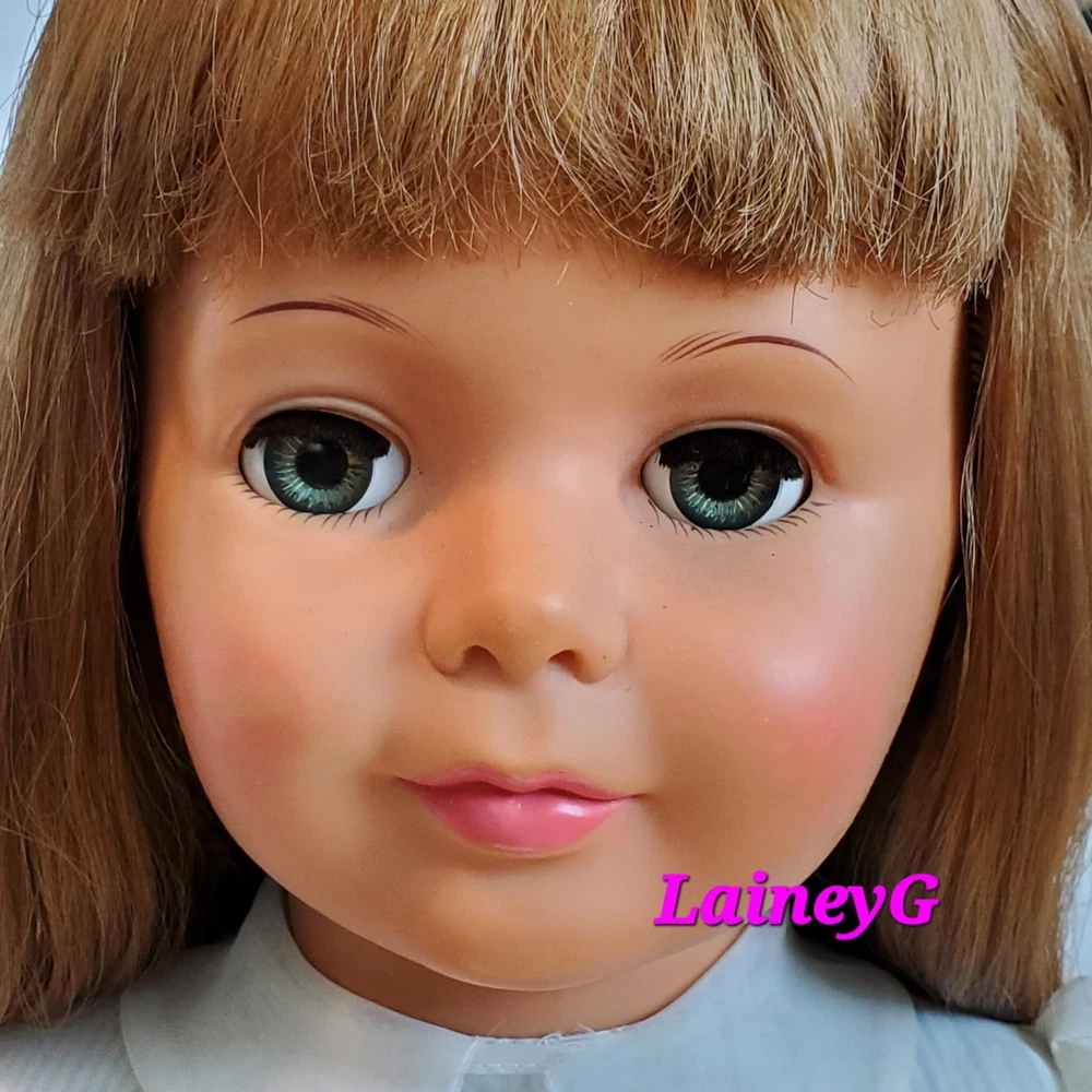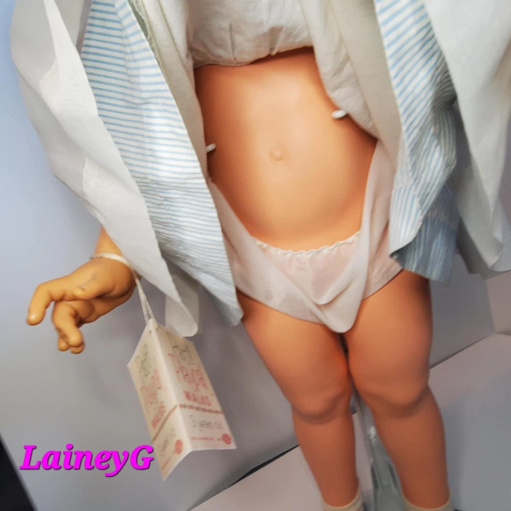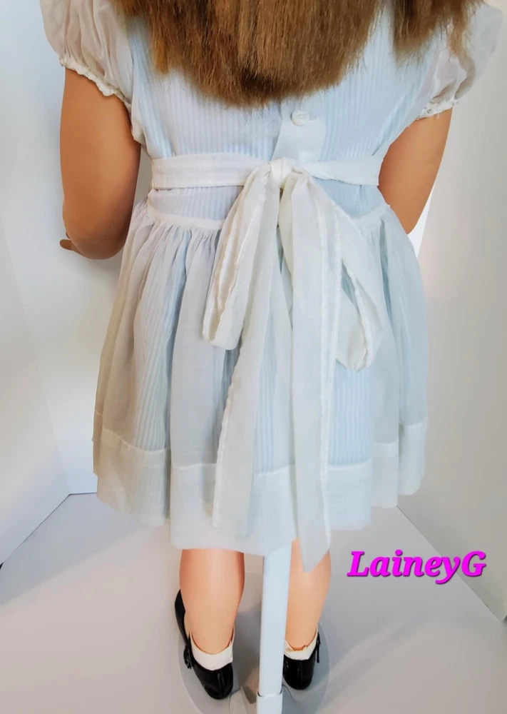 1959 Ideal Patti Play Pal Doll with pinstriped dress, organdy pinafore, panties, socks and shoes. Also has a copy of the original hangtag. She is 35" tall, the size of a three-year-old child. THIS IS NOT AN ASHTON DRAKE REPRODUCTION, THIS IS AN ORIGINAL FROM 1959. This doll would be stunning in your collection! I bought the doll in 1998 and she has been stored in a pet-free, smoke-free home. I have included photos from different angles to give you a better idea of condition. I have never undressed the doll, but have no reason to believe her torso or covered extremities are damaged. I will not undress the doll, as her outfit and shoes could become damaged due to its age. Her strawberry reddish-blond hair is soft and I don't see any missing plus or evidence of a haircut. Her green eyes open and close easily and do not appear cloudy. She has all of her eyelashes and her face paint looks really good for her age and the assumption that she was played with at one time before becoming a collectible. Her pinafore has a few small holes, but does not take away from the overall beauty of this doll. She is marked Ideal 1959 on her neck. Her head is not as tight as it could be, but as you can see from the photos she holds her head up independently. I believe the dress, pinafore and shoes are original, not sure about panties and socks. At one time, I had a massive doll collection, but have sold most of my other dolls. The dolls I have left will be listed and sold on Ebay as well. I want her to go to a home with a new owner who will love and enjoy her as much as I have. Please do not ask me to contact you outside of Ebay. I accept PayPal ONLY. Paypal is only accepted from a confirmed PayPal address. Purchases must be paid for within 3 days of close. Shipping costs are not negotiable. I do not ship overseas, or to Post Office Boxes or APO/FPO addresses. I ONLY ship to the buyer's confirmed Paypal address. NO exceptions. I ship within 3 business days of receiving payment. Items are USED unless otherwise noted in auction. All items are sold "AS IS" and are final. I do my best to accurately describe each item, including any flaws. It is the responsibility of the bidder/buyer to carefully study the pictures. The description is an extension of the photographs. Item is non-returnable. Contact me through Ebay if you have questions before you bid/buy. By bidding/buying, you acknowledge that you have no questions needing to be answered or clarified. Please do not bid/buy if you do not agree with any statement in this auction. If you fail to pay within 10 business days, then this auction is canceled by mutual agreement; the auction will be revoked and a non-paying bidder alert will be filed. Thank you and please check out my other auctions!