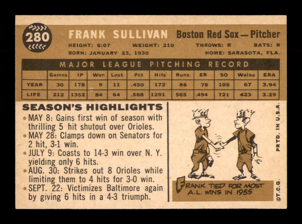 1960 Topps #280 Frank Sullivan NM Baseball Card OBGcards