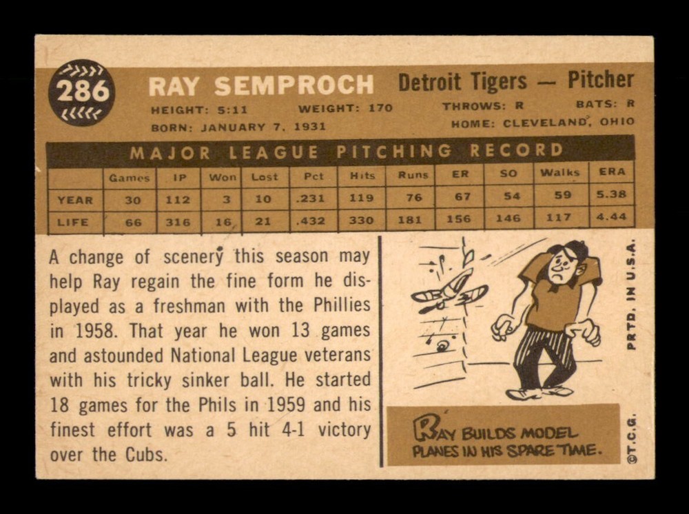 Year: 1960 Series: Varies Sport: Baseball Player: Ray Semproch Graded: No Card Manufacturer: Topps Original/Reprint: Original Season: 1960