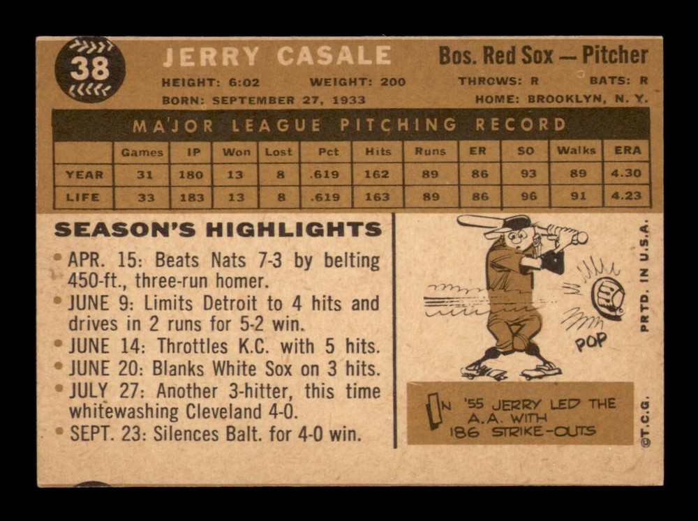 1960 Topps #38 Jerry Casale EX-MINT OBGcards Vintage Baseball Card