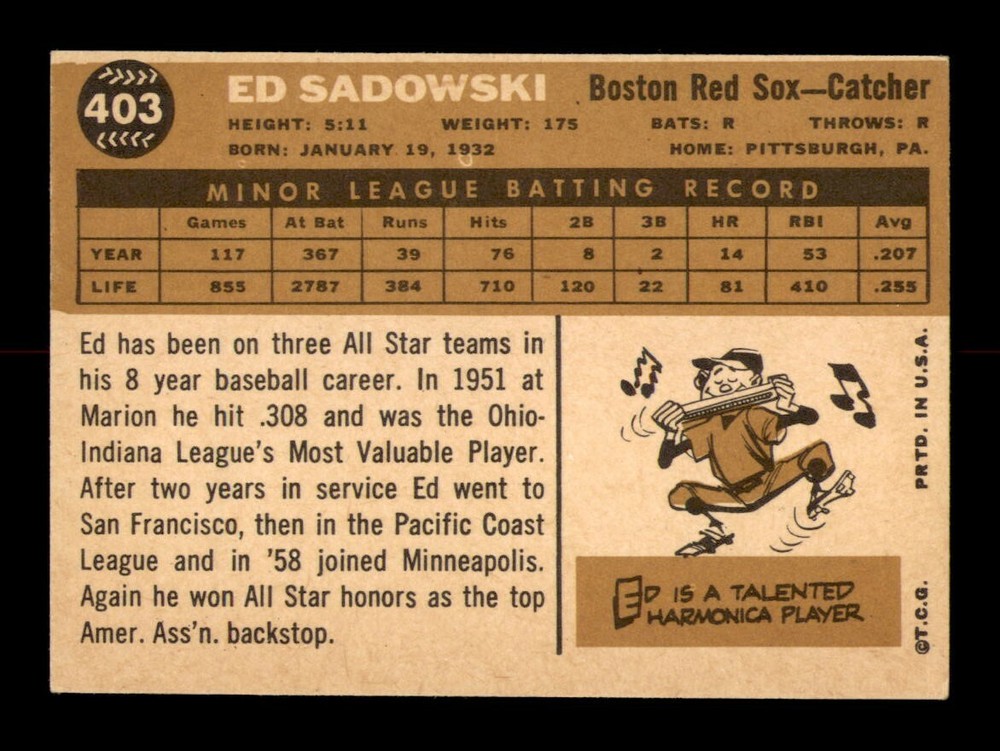 Player: Ed Sadowski Original/Reprint: Original Graded: No Sport: Baseball Card Manufacturer: Topps Year: 1960 Series: Varies Season: 1960