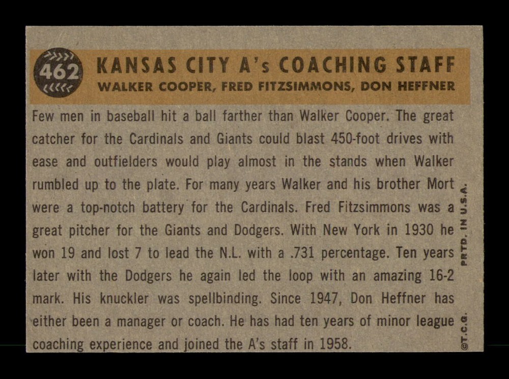 1960 Topps #462 KC A's Coaches NM-MT Vintage Baseball Card OBGcards