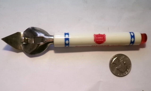 Here is an 1950's/60's era plastic handle bottle/can opener for Lone Star beer. This was brewed by the Lone Star Brewing co. of San Antonio, Texas. it measures 5-1/4" long. US buyer to pay $7.00 for postage.