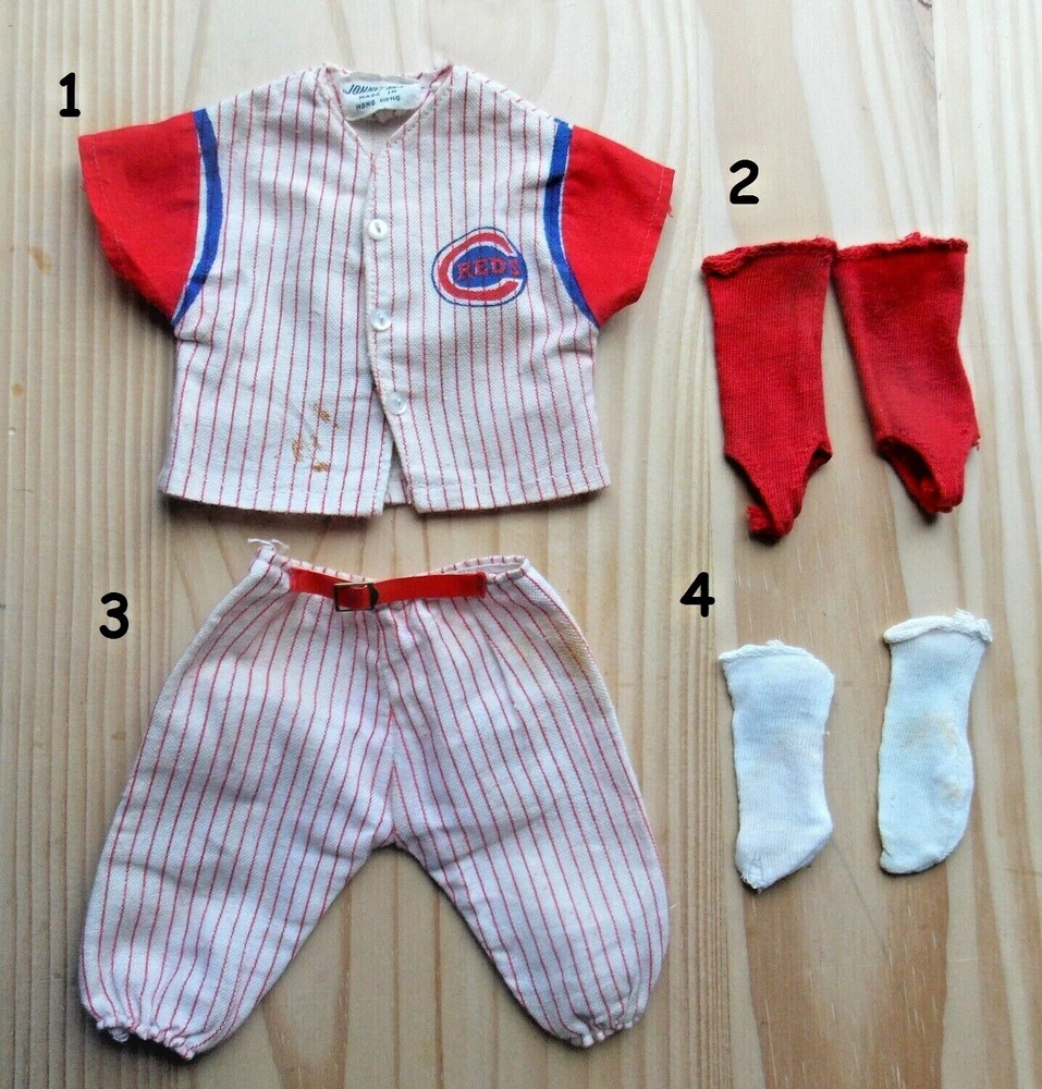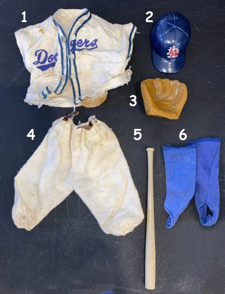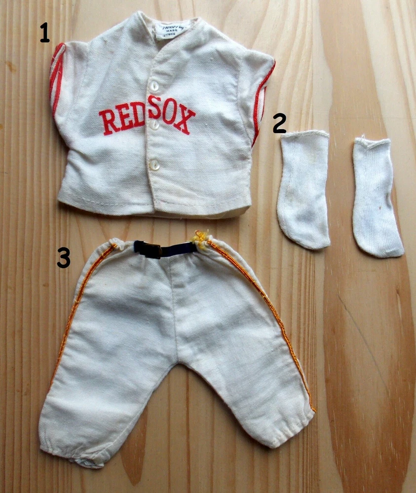 Welcome to TraderbyNature Visit our TraderbyNature Store!!! We have over 100 celebrity dolls & action figures from the 1960s-80s. We specialize in helping you find that last 1970s-80s BODY, HEAD or CLOTHING ACCESSORY to complete your doll or action figure. "1965 JOHNNY HERO -- OLYMPIC HERO -- BASEBALL: NEW YORK METS & YANKEES - BOSTON RED SOX - CINCINNATI REDS - LOS ANGELES ANGELS & DODGERS -- SELECT ONE CLOTHING ITEM -- FOR 13 INCH SPORTS FIGURE BY ROSKO !! " This listing is for the ONE SELECTED CLOTHING ITEM ONLY !!. tbn216 These items are available at time of listing:. o Los Angeles Angels - Baseball Uniform #49 N 2972 - Blue Batting Helmet o Los Angels Dodgers - Baseball Uniform #49 N 2953 - 5 1/2 inch Bat, Glove, Pants with Belt, Shirt with tag marked "Johnny Hero Made in Hong Kong", White Socks, Blue Stirrups o New York Mets - Baseball Uniform #49 N 2960 - Blue Pin Striped Pants ( one set of pants missing part of belt , Blue Pin Striped Shirts marked "Johnny Hero / Made in / Hong Kong", Black Shoes with Cleats marked "Made in Hong Kong", White Socks, One (1) Blue Stirrup o New York Yankees - Baseball Uniform #49 N 2969 - White Socks o Boston Red Sox - Baseball Uniform #49 N 2968 - REPAIRED BAT marked "Johnny Hero Official", Glove, Black Shoes with Cleats marked "Made in Hong Kong", White Socks o Cincinnati Reds Sox - Baseball Uniform #49 N 2965 - Red Pin Striped Pants, Red Pin Striped Shirt #80 marked "Johnny Hero / Made in / Hong Kong", White Socks, Red Stirrup Socks o Olympic Hero - Sport Star - Red Pants with White Stripe, Red Shirts #16 with White Trim These items are in PLAYED WITH CONDITION and we consider all sales FINAL . We are not an action figure or television memorabilia expert. We are selling in "AS IS" condition, but please, feel free to "ASK US" any questions you might have on this item.