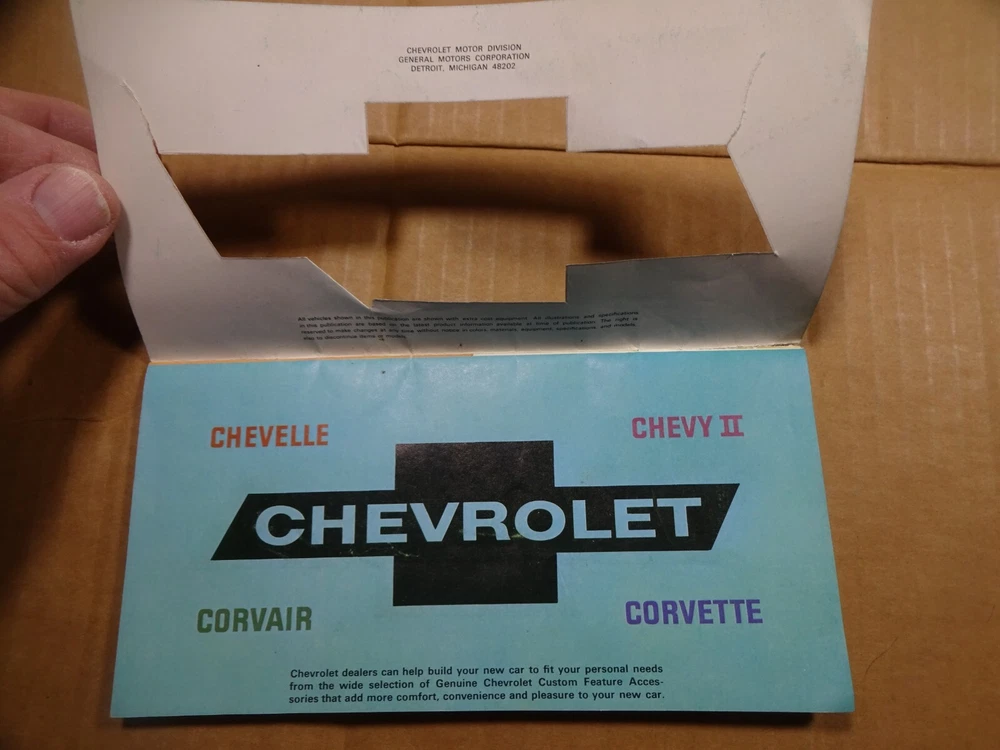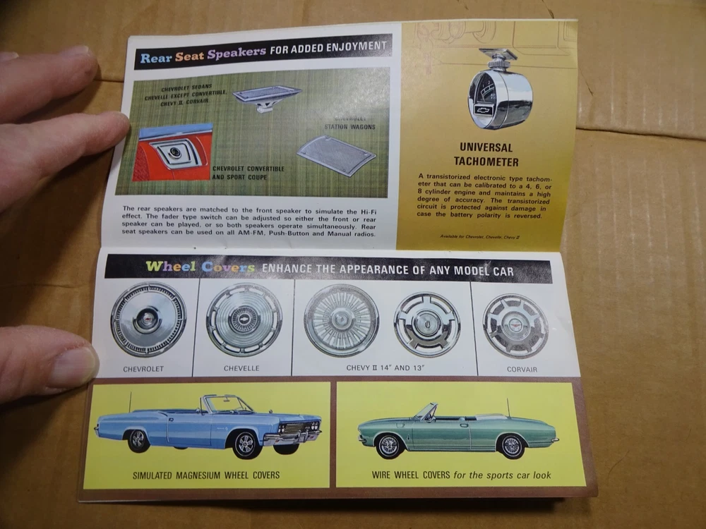 Used original 1966 Chevrolet Chevelle, Corvair, Corvette, ChevyII accessories brochure. This is a used manual, see pictures for actual condition, I try to show the worst of any damage.