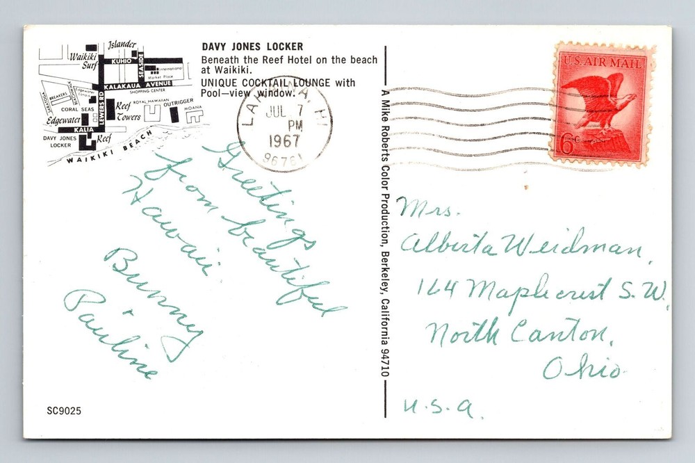1967 Waikiki HI Vintage Davy Jones Locker Hawaii Postcard