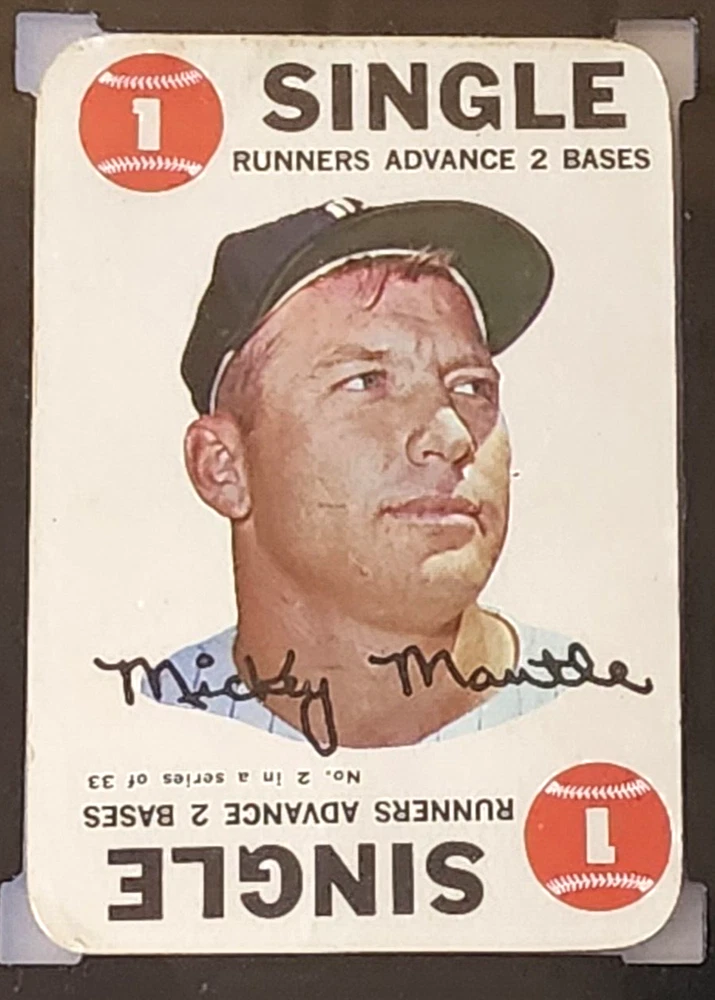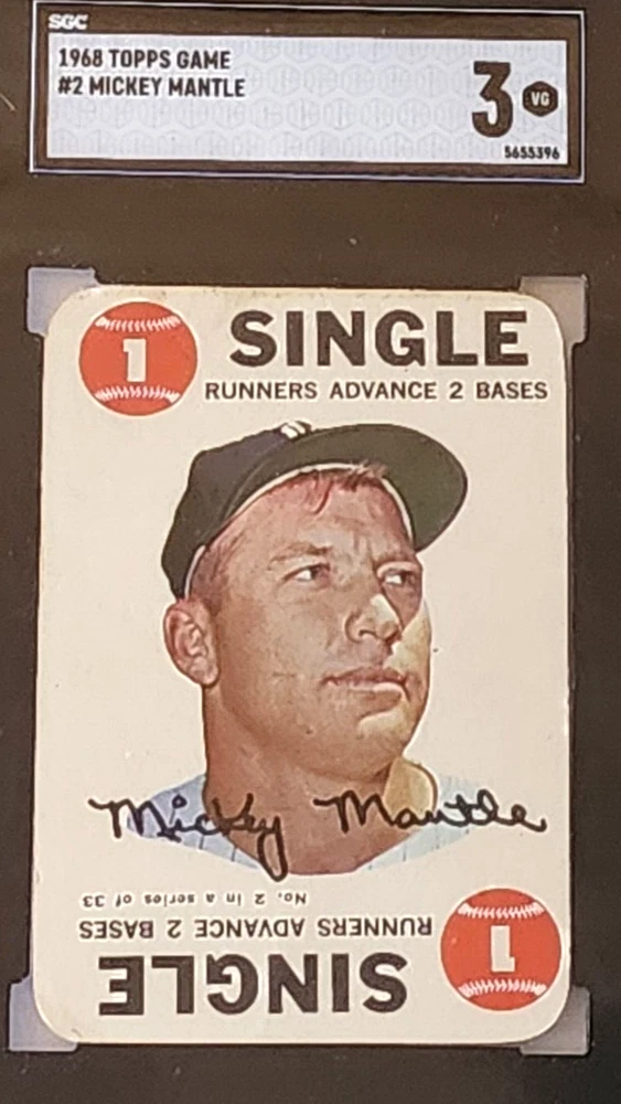 1968 Mickey Mantle “single” topps baseball card! Any Yankees fan or sports memorabilia fan wants a Mickey Mantle in their collection! This card is a great piece of baseball memorabilia no matter if you’re a fan of the Yankees or not. Card is not perfect by no means. Does show some age but it is almost 60 years old! Mickey Mantle is known as one of the greatest to ever do it. Time for a new home. Message me if you need any more information or pictures!