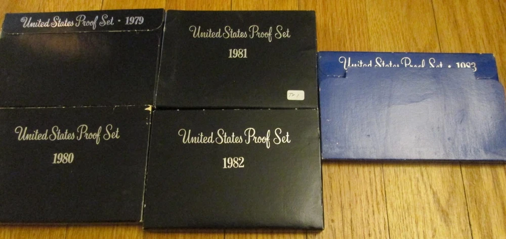 1968 to 1998 Proof Sets U.S. Mint 31 Proof set San Francisco Mint Box & COA My best selling sets, The coins in the Pictures are not the exact coins that you will receive. They are however a good representation of what you will receive. COA is always included when issued by US Mint. Issued from 1986 to date 1968 5 coin Proof Set. 1969 5 coin Proof Set. 1970 5 coin Proof Set. 1971 5 coin Proof Set. 1972 5 coin Proof Set. 1973 6 coin Proof Set. 1974 6 coin Proof Set. 1975 6 coin Proof Set. 1976 6 coin Proof Set. 1977 6 coin Proof Set. 1978 6 coin Proof Set. 1979 6 coin Proof Set. 1980 6 coin Proof Set. 1981 6 coin Proof Set. 1982 5 coin Proof Set.+ medal 1983 5 coin Proof Set. 1984 5 coin Proof Set. 1985 5 coin Proof Set. 1986 5 coin Proof Set. 1987 5 coin Proof Set. 1988 5 coin Proof Set. 1989 5 coin Proof Set. 1990 5 coin Proof Set. 1991 5 coin Proof Set. 1992 5 coin Proof Set. 1993 5 coin Proof Set. 1994 5 coin Proof Set. 1995 5 coin Proof Set. 1996 5 coin Proof Set. 1997 5 coin Proof Set. 1998 5 coin Proof Set.