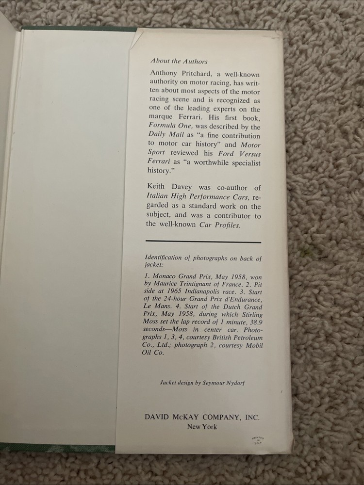 Dive into the thrilling world of motor racing with "The Encyclopedia of Motor Racing" by Anthony Pritchard and Keith Davey. A treasure for enthusiasts and historians alike, this 1969 first edition is an authoritative guide to the exhilarating realm of auto racing. With its comprehensive content and captivating illustrations, it's a must-have for any serious collector or fan of the genre. This hardcover gem, published by David McKay, boasts a dust jacket that adds to its charm and historical value. The book is replete with enthralling accounts and insightful information, making it an exceptional find for those passionate about motor sports. Its place in the annals of literature is secured by its originality, and it's sure to be a standout addition to any library.