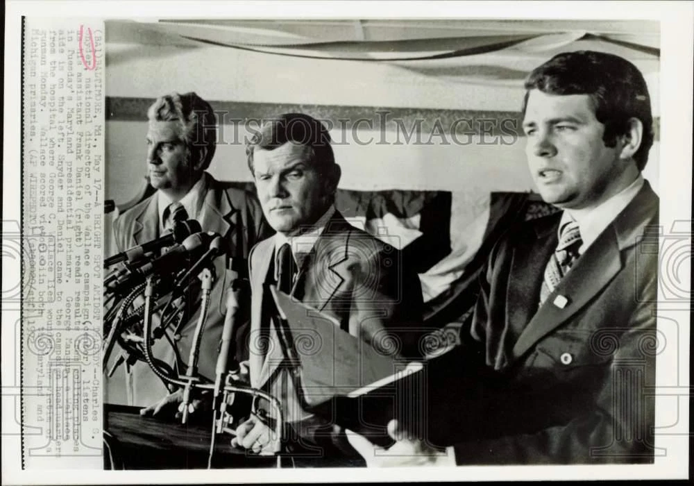 ebay template Note: Please study the images carefully to determine the condition of this vintage photograph, as it may not be in perfect condition. It may contain wrinkles, cracks, and possibly even tears due to its age and how it was handled before it got to us. A scanner may interpret colors and contrast differently than human eyes will, so it is possible that the actual photograph may be slightly darker or lighter in person. This vintage photograph is offered for sale as a collectible item and conveys no transfer of copyright. 1972 Press Photo Frank Daniel announce primary election results in Baltimore This is an original press photo. Baltimore, Maryland. Charles S. Snyder, national director of the Wallace campaign (center), listens as his assistant Frank Daniel (right) reads results from polling places in Tuesday's Maryland presidential primary. George Mangum, a Wallace aide is on the left. Snyder and Daniel came to the campaign headquarters from the hospital where George C. Wallace lies wounded, the victim of a gunman Monday. Wallace scored victories in both the Maryland and Michigan primaries.Photo measures 10.25 x 7inches. Photo is dated 05-17-1972. PHOTO FRONT PHOTO BACK Historic Images Part Number: kfa27600 FAQs Q: Can I just download a digital version instead? A: No, we sell only vintage originals and do not make or distribute any copies, including digital ones. Q: Do you combine shipping and invoices? A: Multiple photos won on the same seller ID combine automatically through the eBay checkout process. If you encounter problems with this, send us a message via eBay messaging and we will send you an invoice. Due to eBay limitations, we cannot combine items won on our different seller IDs for a single shipping charge. Q: How quickly do you ship the items once paid? A: We ship within one business day after your payment clears. If you do not receive an "order shipped" email from us by the close of the second business day from submitting payment, please e-mail us via eBay messaging. Q: How do you make sure my photograph arrives safely? A: We package each order between two cross-corrugated pieces of cardboard to ensure that the package is as difficult to bend as possible. We then wrap each order in a plastic sheet to help protect against moisture. We want you to rest assured that we take every precaution to ensure that the photograph you receive will be in the same condition in your care as it was in ours. Q: Will the "Historic Images" watermark be on my photo when I receive it? A: No. This is a digital watermark we use to protect our images. It is not printed on the photo. Q: What are your office hours? A: eBay for us is a business, and a very fun one to be in! We are open M-F 9 to 5 (CST). Therefore, we do not return e-mails and phone calls over the weekend. We observe the following holidays: New Years Day, Memorial Day, Fourth of July, Labor Day, Thanksgiving and the day after Thanksgiving, Christmas Eve and Christmas Day. Q: Where did all these vintage photos come from? A: These original vintage photographs are from various news service and newspaper photo archives from locations around the country including: Boston, Detroit, Tampa, Chicago, Denver, Seattle, New Orleans, Milwaukee, Portland, Spokane, and more. We do not copy or reproduce any photographs -- every item is a unique vintage piece that was housed in a news archive. Q: Can I use this photograph in my book/blog/website? A: The short answer is no. There is no transfer of copyright for republication or reproduction with these photographs when you purchase them, and only photographs taken before 1923 are currently automatically in the public domain. Permission from the copyright holder, which usually can be identified from the back of each photo, must be sought to republish or reproduce the image for any purpose. Q: Do you relist items (in case I miss an auction ending)? A: Auction items that receive no bids are relisted in our store (historicimages-store on eBay) as a fixed-price item and at a higher price than the starting auction price. Q: Do you leave feedback? A: Yes, we always leave feedback for buyers. Our software monitors when our buyers leave us feedback, then notifies us that we can leave feedback for the buyer. Rest assured, if you leave feedback, we will do the same! Check out our family of eBay IDs: historicimages01 Sports Photos historicimages02 Entertainment Photos historicimages03 Americana Photos historicimages04 International & War Photos historicimages05 Transportation Photos historicimages06 Photos of All Subjects historicimages07 Entertainment Photos historicimages08 Newsworthy Photos historicimages09 Entertainment Photos historicimages10 Sports Photos historicimages-store Our largest fixed-price selection historicimages-gallery Hand-picked photos Saturday night auctions About Us Historic Images was formed in September 2009, with a handful of scanners working out of a basement to digitize newspaper photo archives. We have since moved out of the basement, and we can now archive thousands of photos per day. Our company has worked with magazines and newspapers from Detroit, Boston, Denver, Seattle, Tampa, Chicago, and New Orleans, just to name a few. We are constantly adding to our inventory, and have assembled an archive of millions of photos to date. As our company evolved, we began our eBay business, which brings thousands of fresh auctions per week to the world's largest online auction marketplace. Our custom software systems and team of great employees allow us to efficiently scan and sell large photo archives online. At the very core of our company's DNA is a strong commitment to customer satisfaction and strict integrity for our product. Our promise to you is that we will do everything in our power to provide you a great buying experience. Copyright 2009 - Present, Historic Images, Inc. Sell Smarter with Kyozou. Inventory and Ecommerce Management